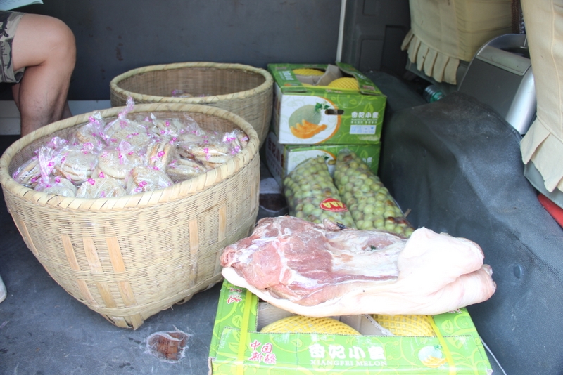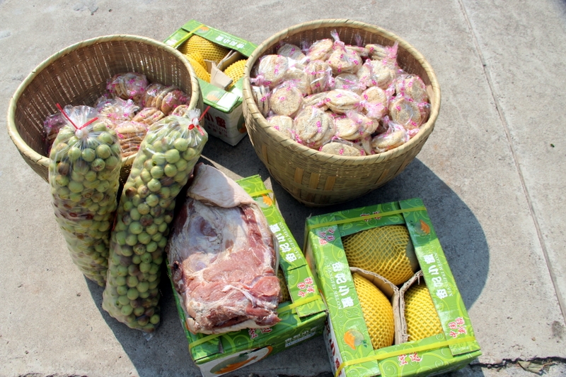 慰问品有:猪肉、月饼、冬枣、哈密瓜