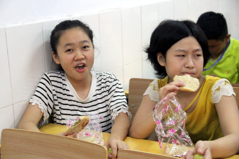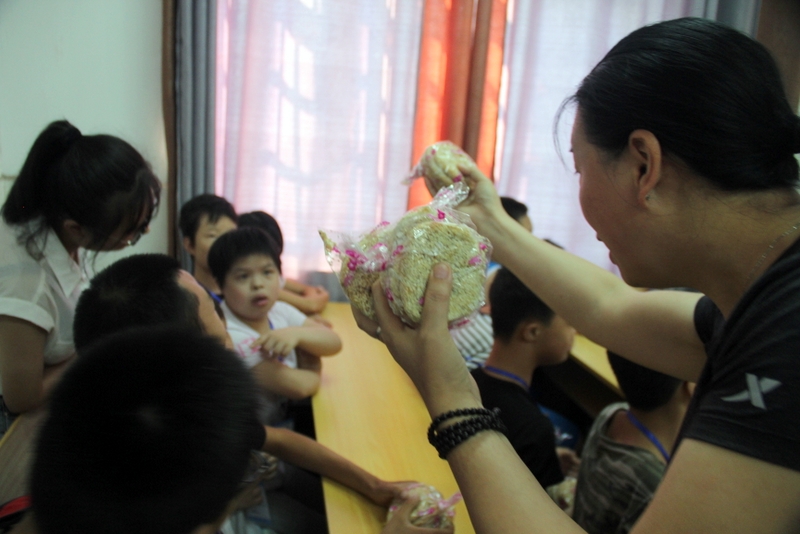 仪式现场,慰问的老师们给孩子发放了麻饼和水果,一股浓厚的“正源味道”飘香满屋,特校的孩子纷纷竖起了 大拇指,为麻饼的味道点赞,也为正源的到来说声谢谢。