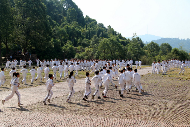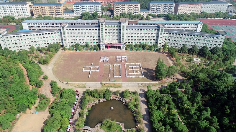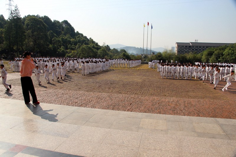 小学部六年级全体学生承担表演。雄伟的教学大楼做背景,宽阔的学校广场作平台,年级主任蒋飞组织学生从广场四周跑步进场,不一会“中国”“70”“耒阳”的造型完美地呈现在观众眼前。