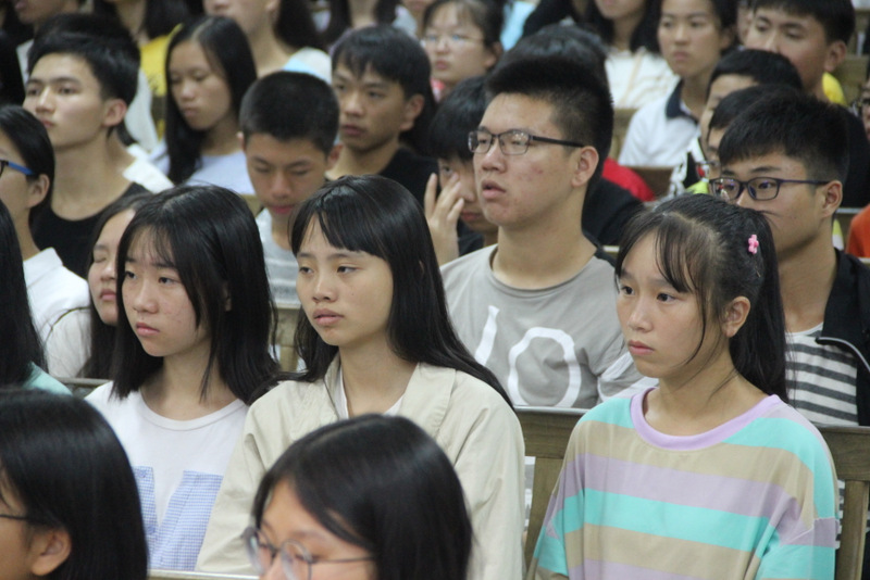 同学们对罗校长的讲话爆出长时间的热烈掌声。