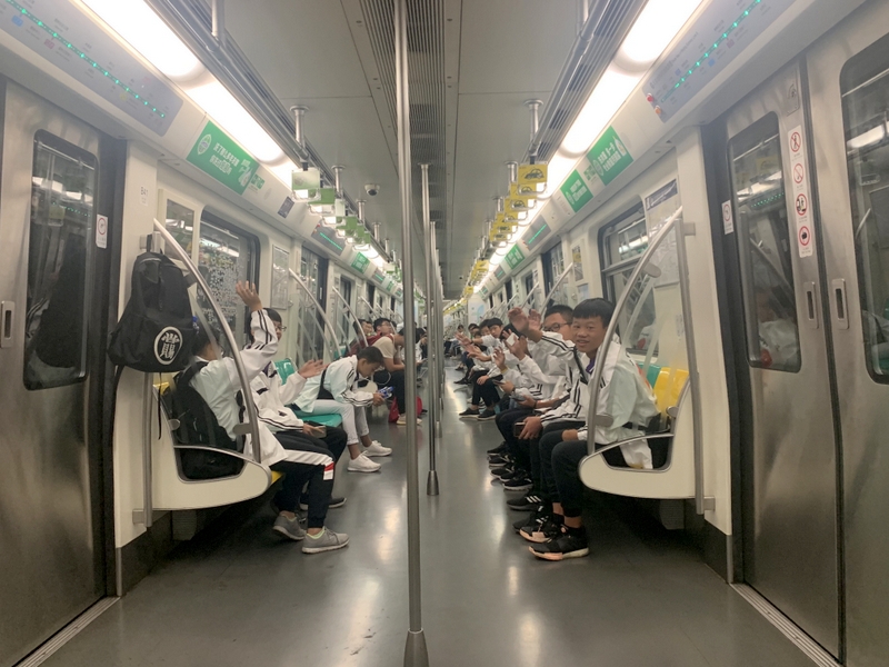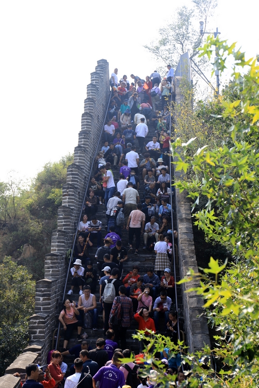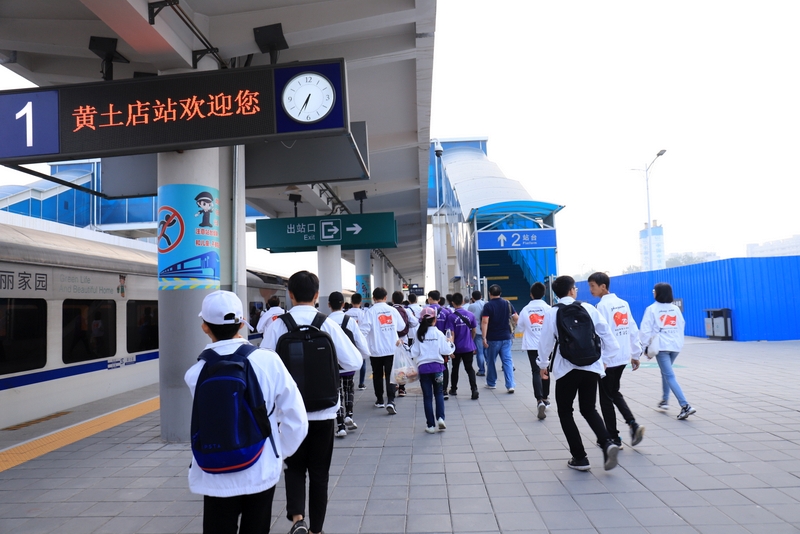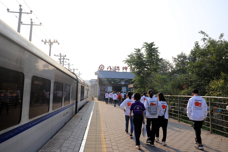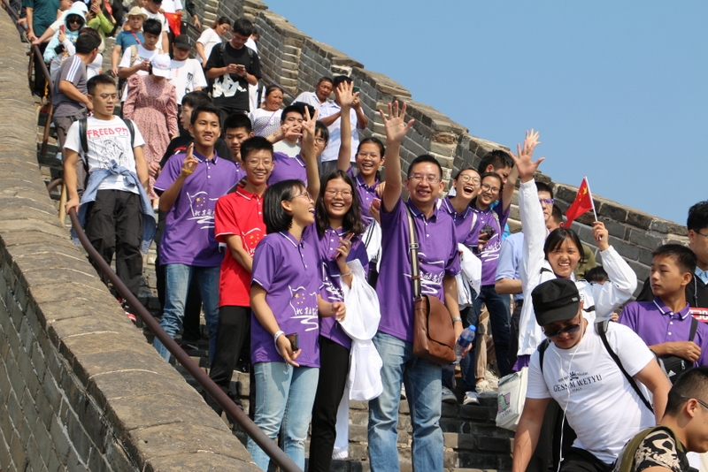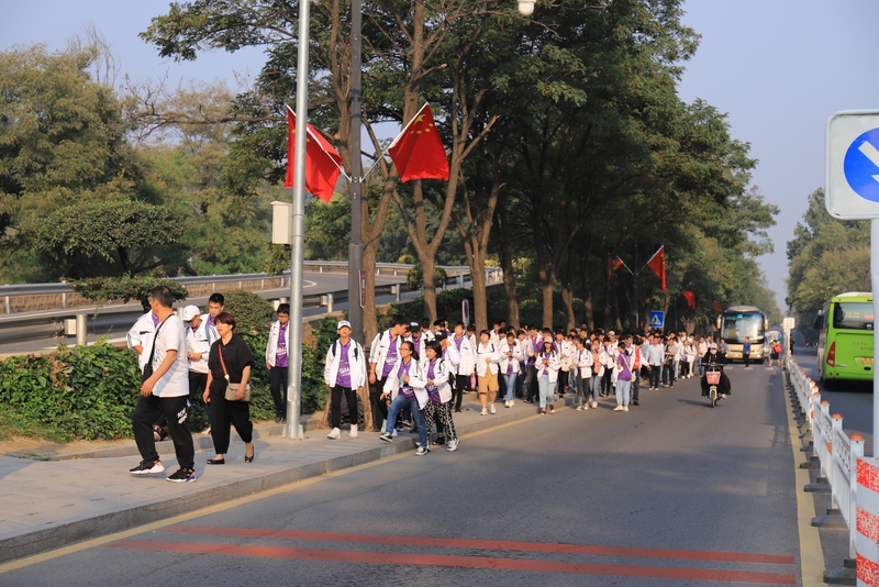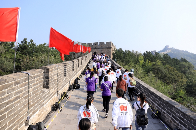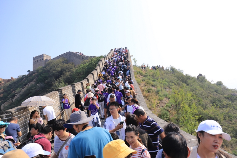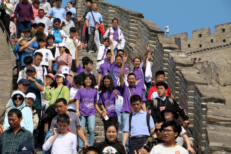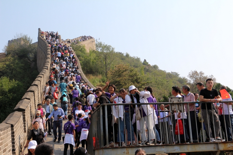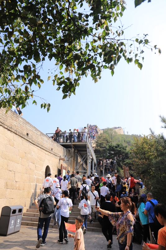 凌晨四点半,同学们便按时起床,洗漱完毕,走向金台路地铁站。几经转乘,早上八点钟左右,来到长城脚下。