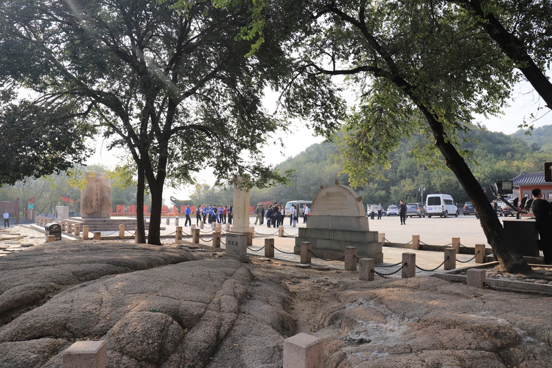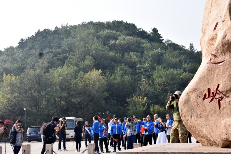 在毛泽东同志“不到长城非好汉”标语前,先来一张合影
