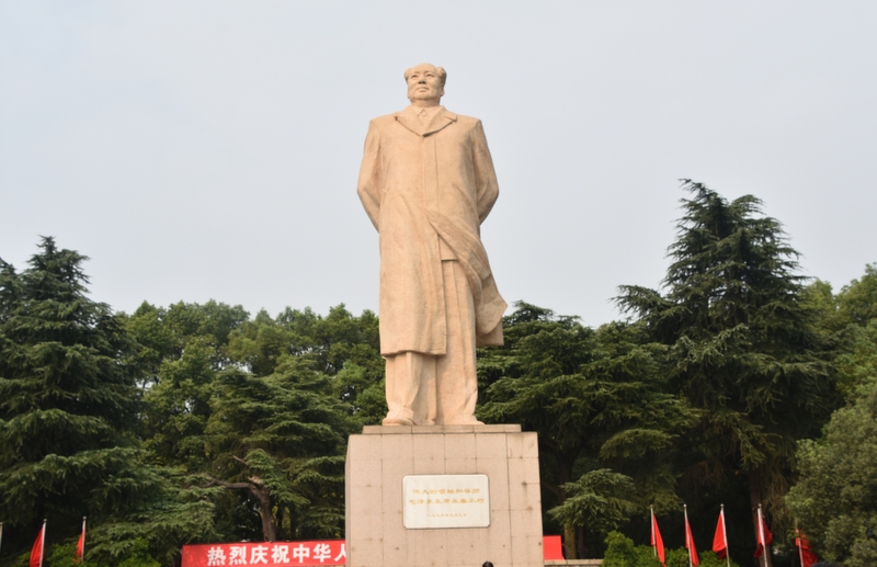学校东方红广场上雄伟的毛泽东塑像