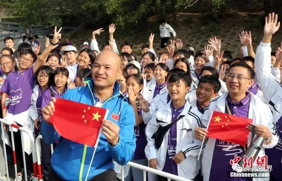 2019年9月30日,北京八达岭,长城脚下。与香港光头警长刘Sir的不期而遇,向世界展示中国内地学生精神风貌的同时,也验证了正源教育的成功。