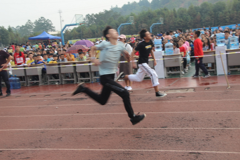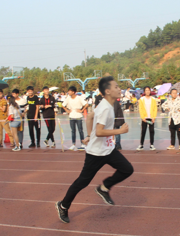 男子组3000米跑,405班刘湘穗以12分55秒30的成绩夺得第一名;