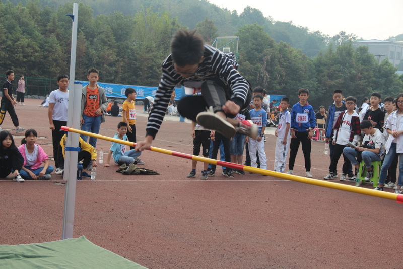 男子组跳高,435班刘意祥以135厘米的成绩夺得第一名;