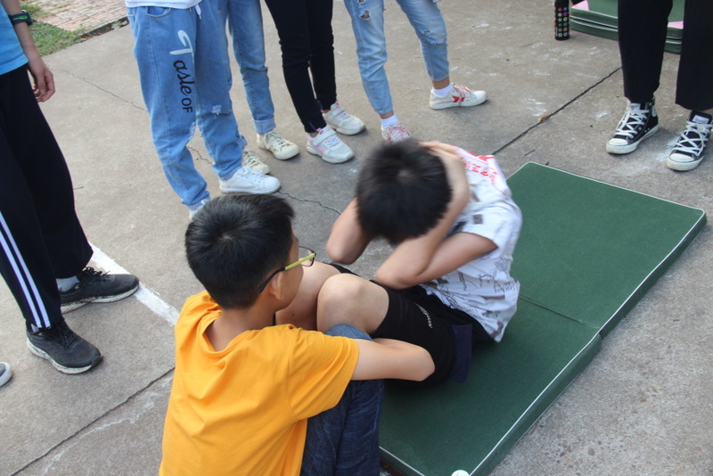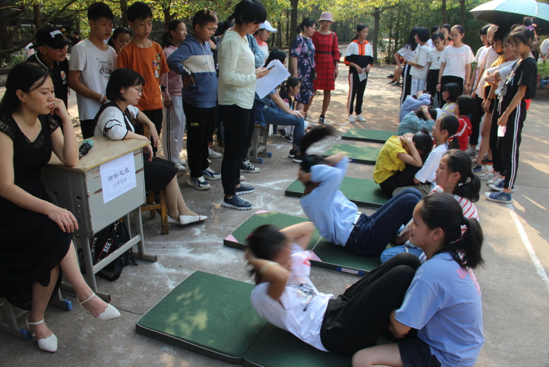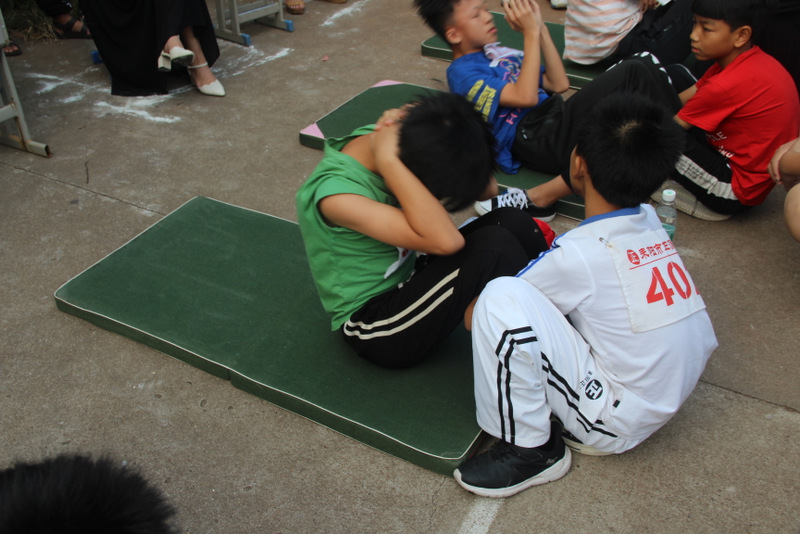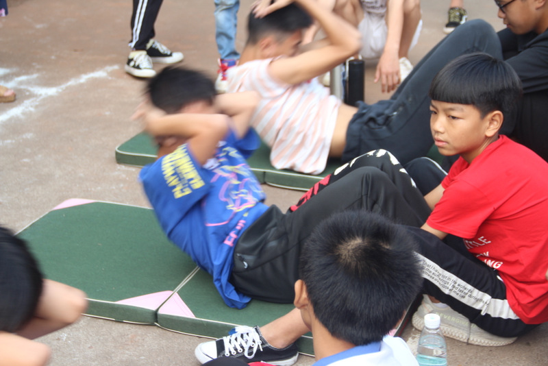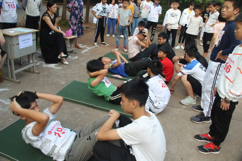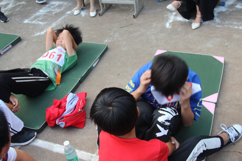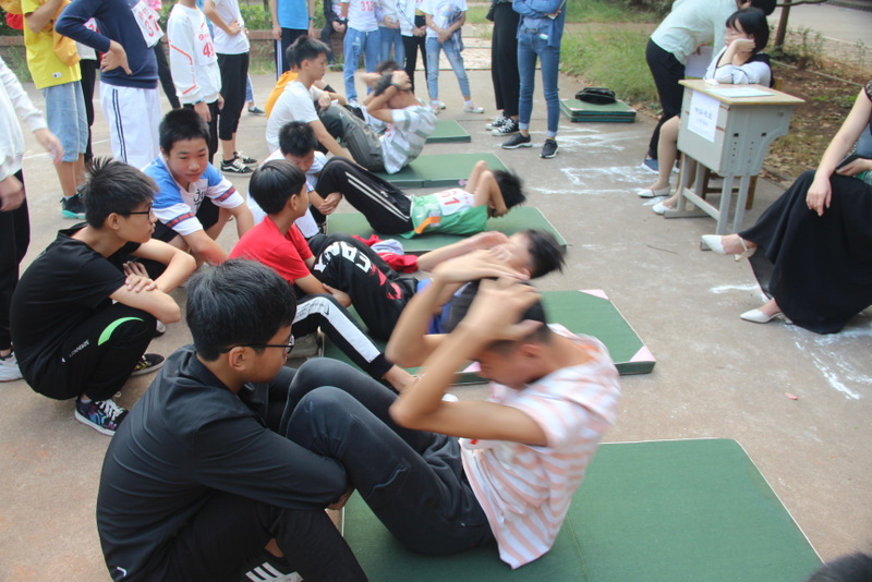 男子组仰卧起坐,335班黄晓楠以63次/分钟的成绩夺得第一名;