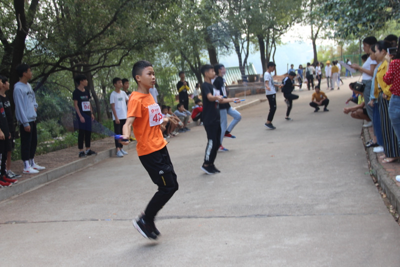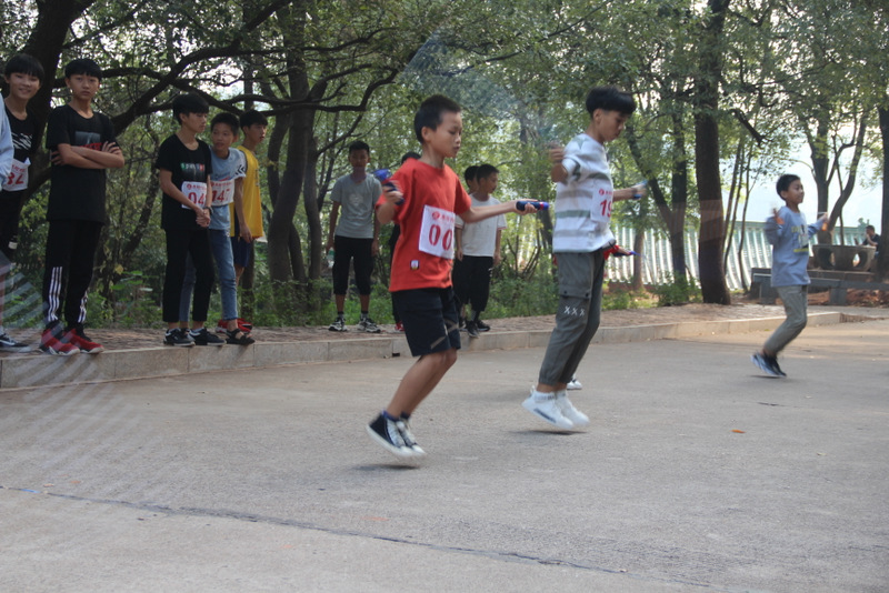 男子组跳绳,335班黄海龄以194次/分钟的成绩夺得第一名;
