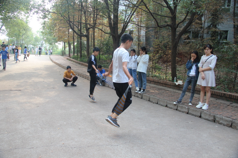 女子组跳绳,347班黄海龄以181次/分钟的成绩夺得第一名;