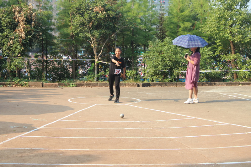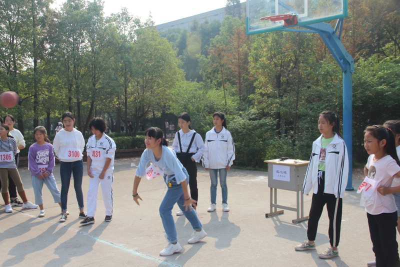 女子组定点投篮,331班黎姝妮以10投4中的成绩夺得第一名。