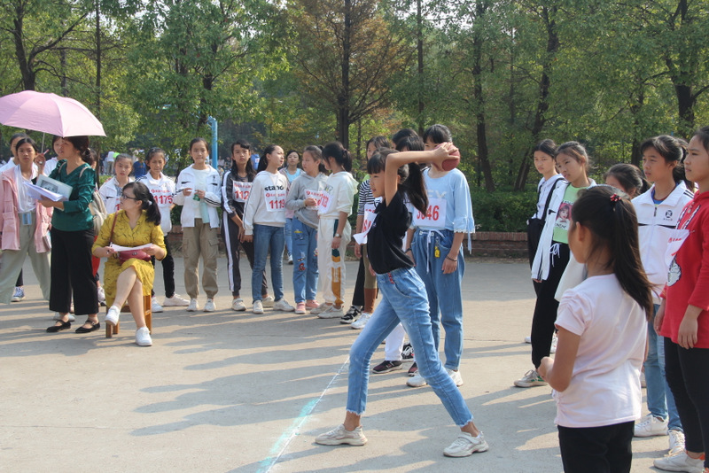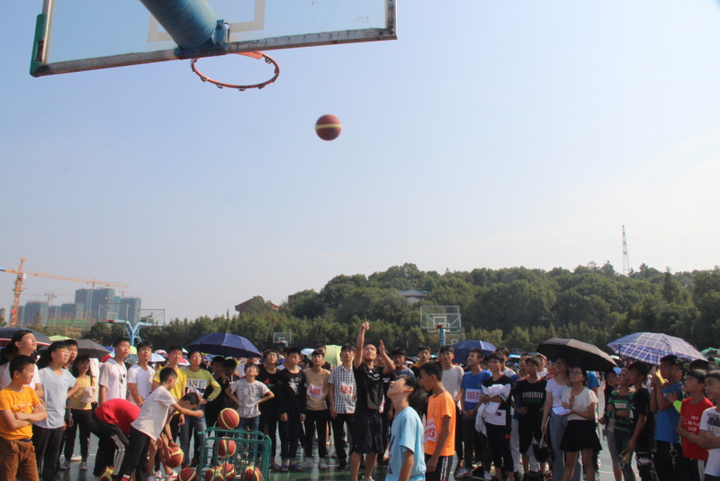 女子组定点投篮,359班龙宇浩以10投5中的成绩夺得第一名;