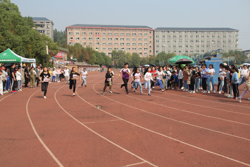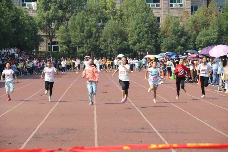 女子组跳远,395班曾利梅以3.41米的成绩夺得第一名;