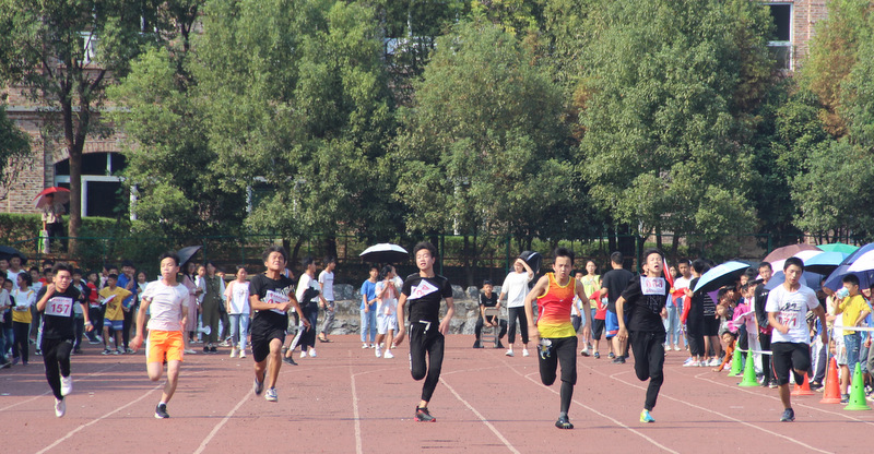 女子组100米跑,369班陈好15秒67的成绩夺得第一名;