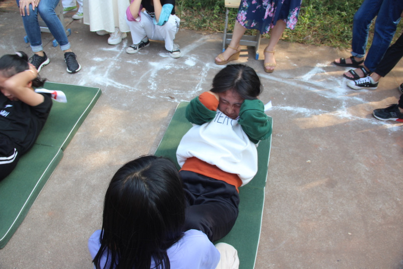 女子组仰卧起坐,410班刘诗欣以45个/分钟的成绩夺得第一名;