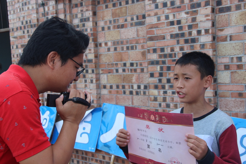 男子组100米跑,445班柳喆轩以14秒67的成绩夺得第一名;