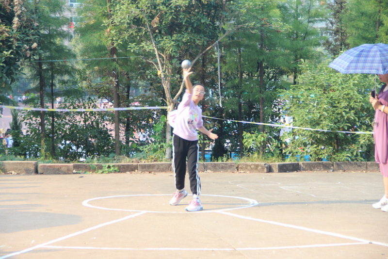 女子组铅球,394班段国芳以6.50米的成绩夺得第一名;