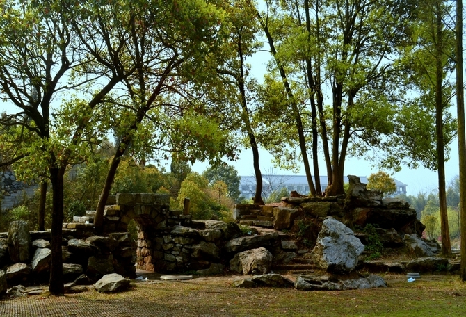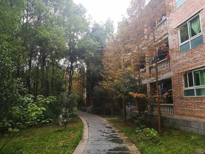 青石、龙阶、绿树、红楼、石板曲径,加上屋后的青山、茂林、修竹,完完全全一幅画