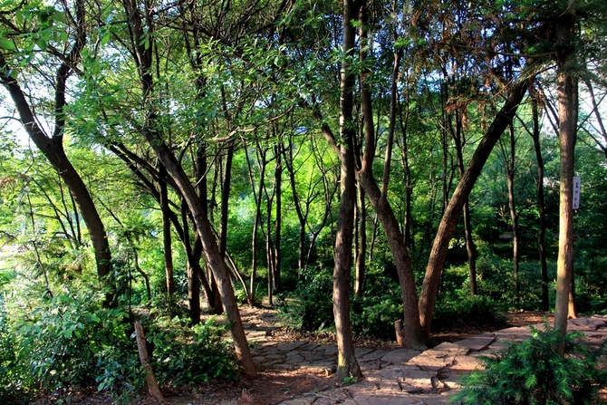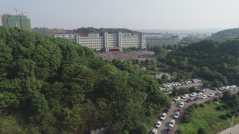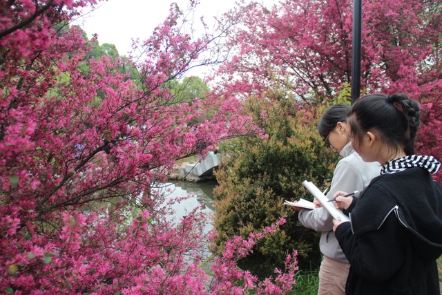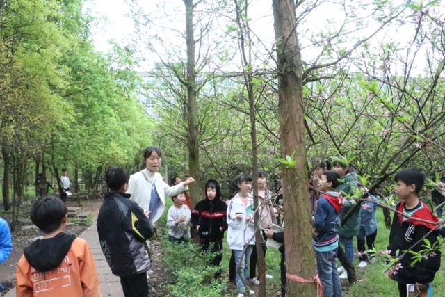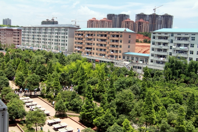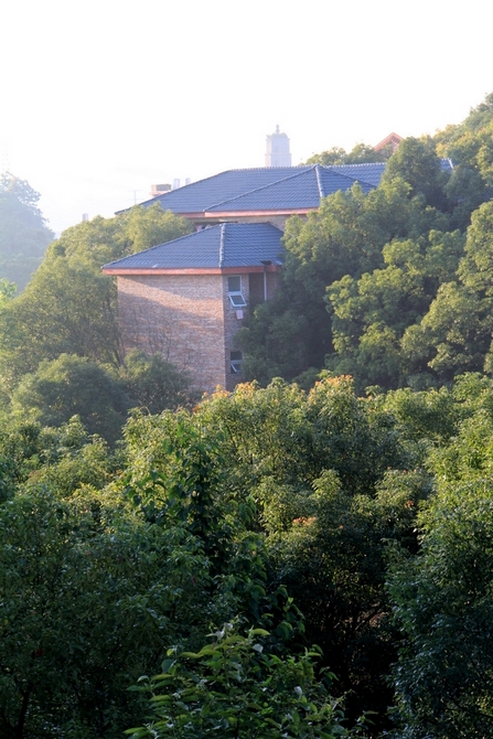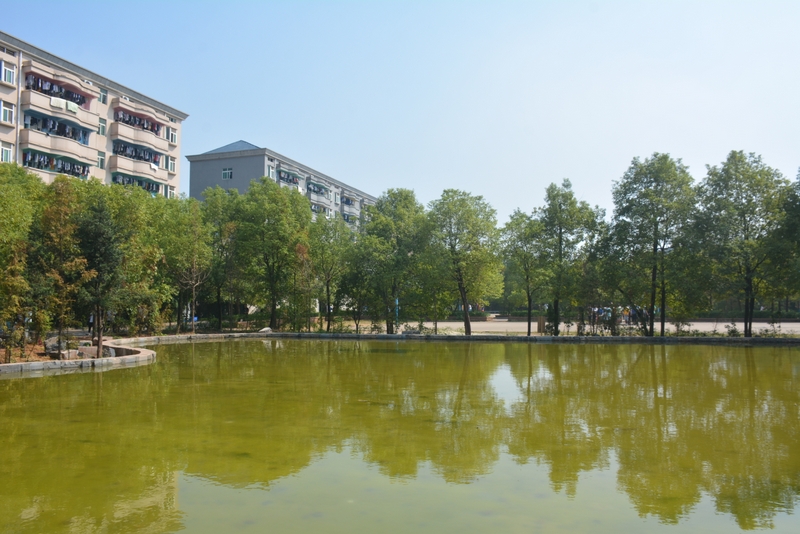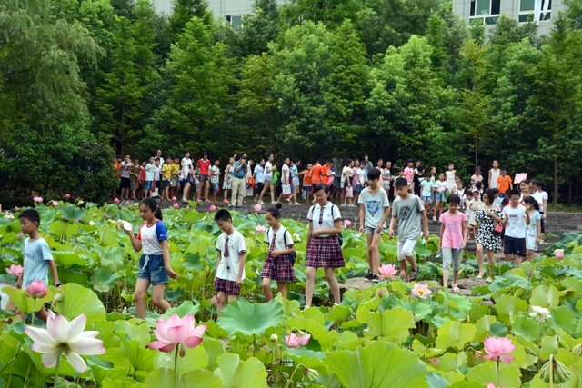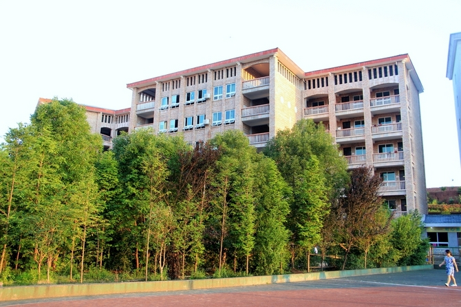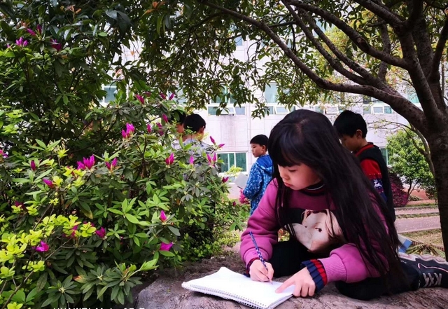 现在,主校门两侧的东山西山,绿树苍天,浓荫匝地,百鸟争鸣,四季花香。在建造东苑、西苑房子时,因树划线,能绕开树木则绕开,呈现出“林中隐屋,屋边傍树”的画面。建筑物之外,学校遍植花草竹木,郁郁青青,自然生长,充满勃勃生机;挖掘方塘种植荷莲,红的花,绿的叶,品格芬馨,洗涤师生心灵。