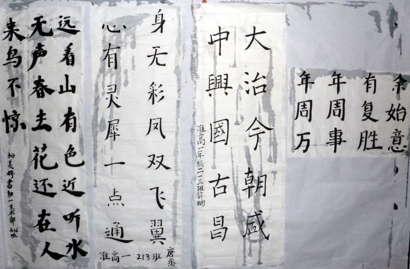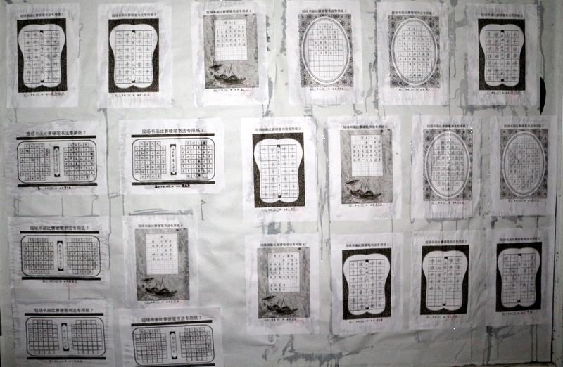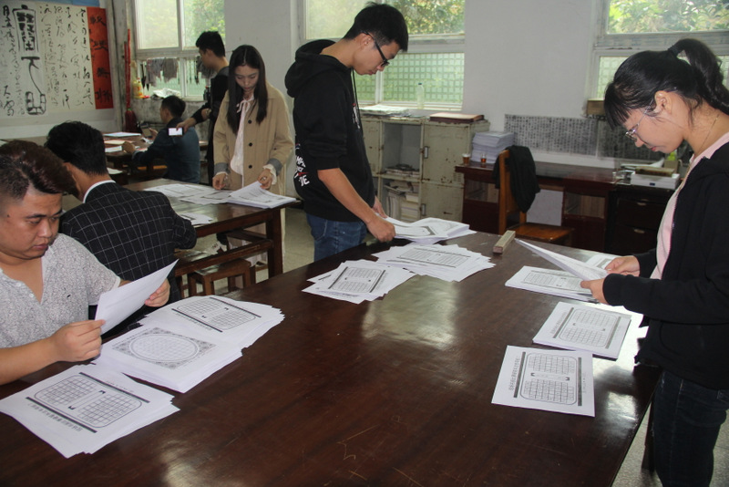 10月12日下午进行的第三届中学生体育艺术节千人书画大赛刚一结束,书画组老师便在吴巨星老师的组织下,在高中部书法教室紧锣密鼓地开始进行评选。评选分为书法组和绘画组,老师们将参赛作品摆在桌面上,认真审看,反复比照,有重点疑惑问题,通过微信发送图片,请求外地著名学府的大咖进行评议。经过两天时间的紧张工作,各类别、各年级的获奖名单均已出炉,硬笔书法组共有285名同学获奖,其中银牌奖7名,铜牌奖13名,一等奖79名,二等奖78名,三等奖64名, 44名同学获优秀奖。毛笔书法组共有43人获奖,其中金牌奖7人,银牌奖6人, 铜牌奖6人,优秀奖24人。绘画组共有133人获奖,其中,金牌奖6人,银牌奖13人,铜牌奖18人,优秀奖96人。