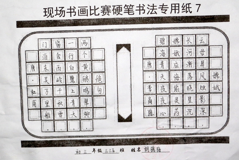 | 304 | 高二 | 181 | 吴泉 | 硬笔 | 二等奖 |