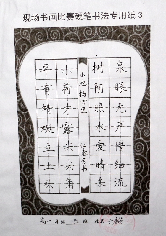 | 258 | 高一 | 192 | 谢莞玉 | 硬笔 | 二等奖 |