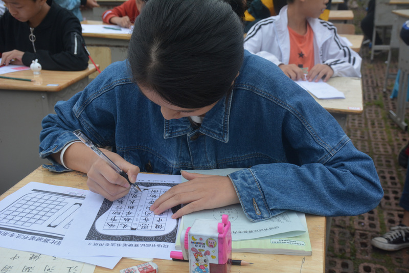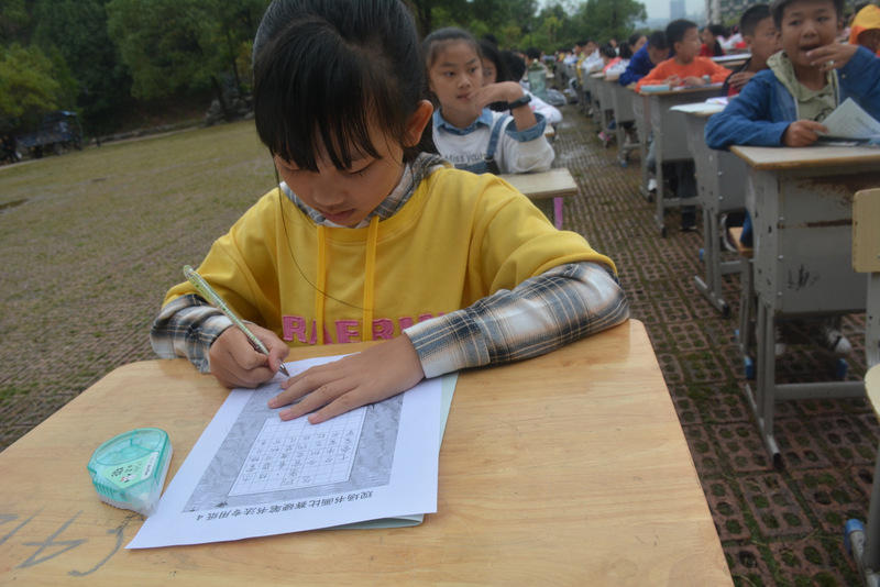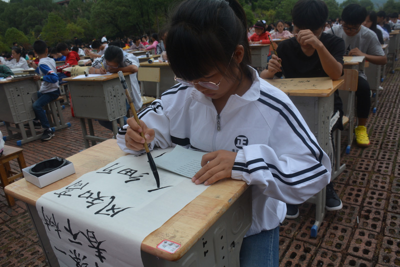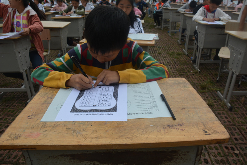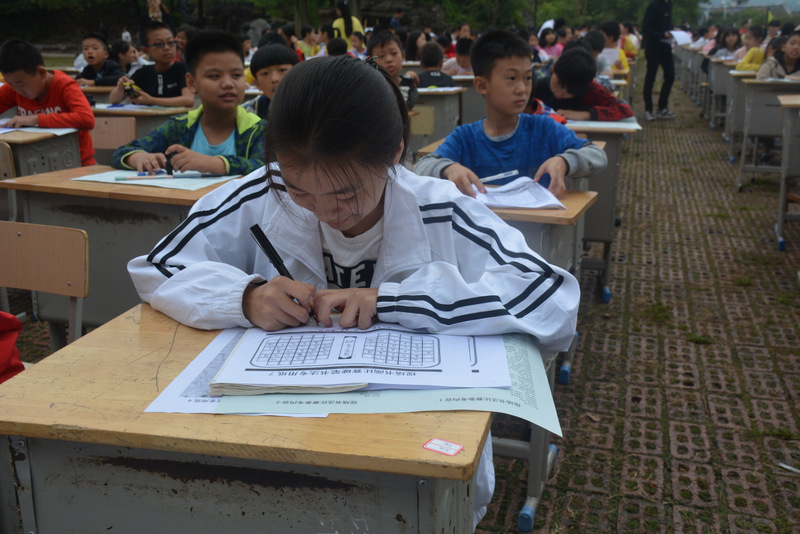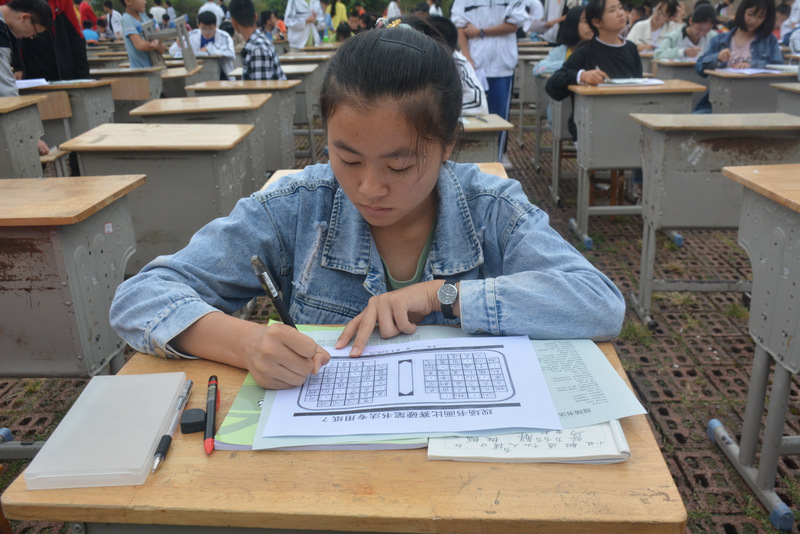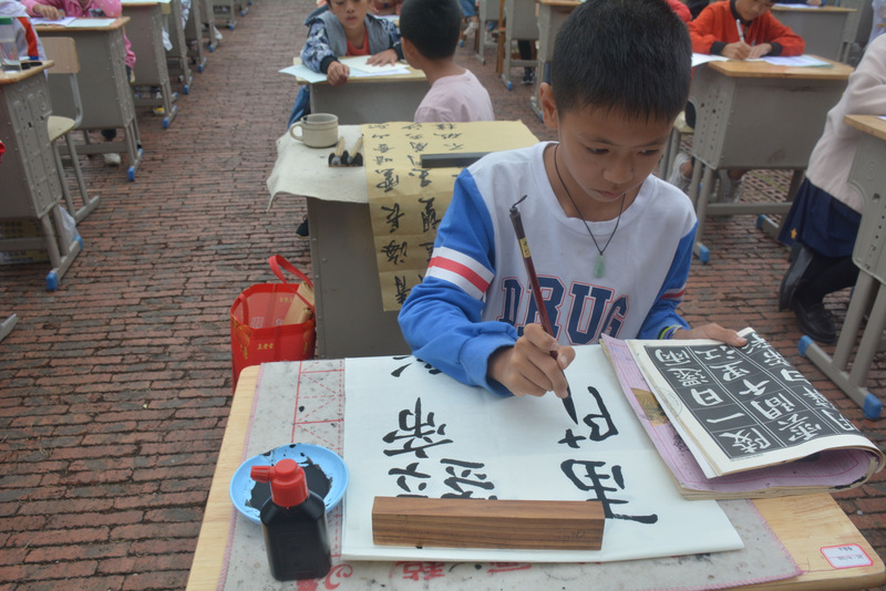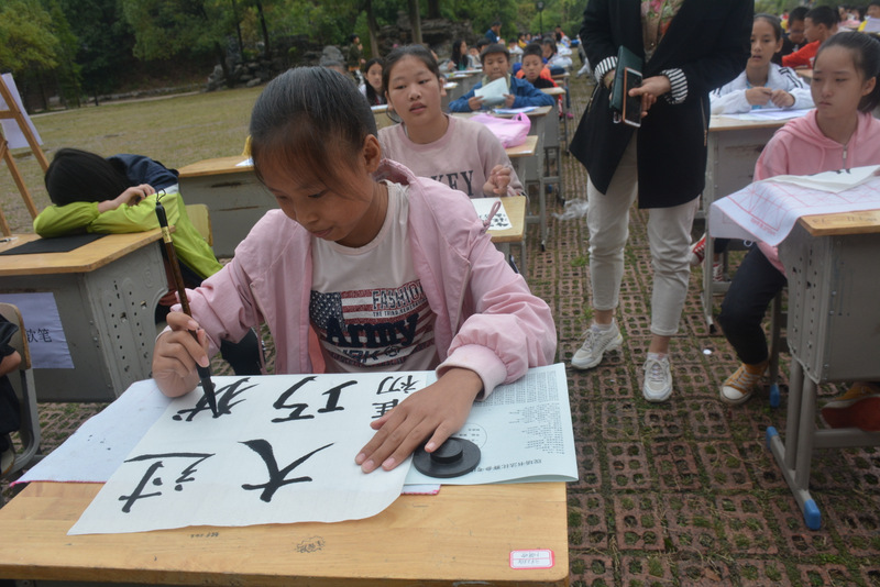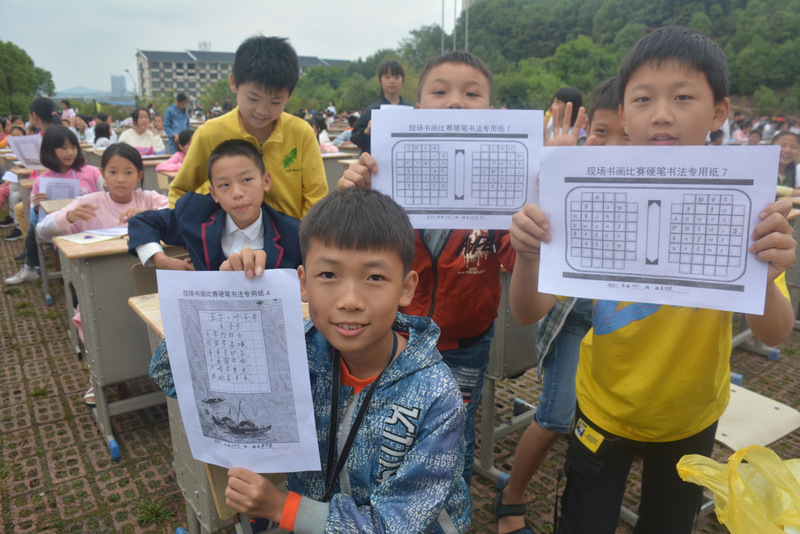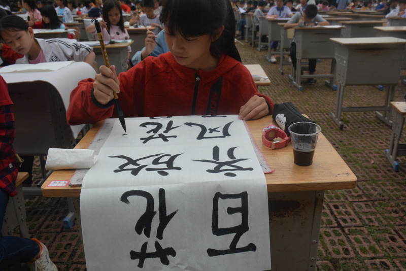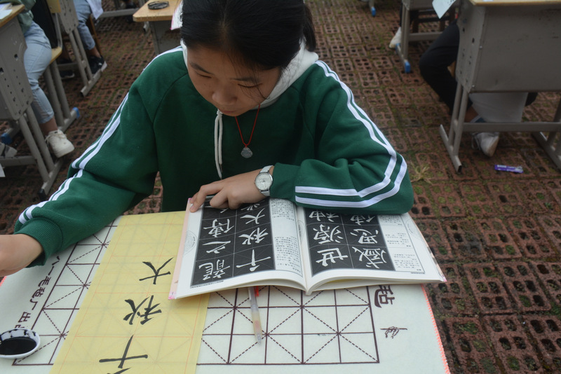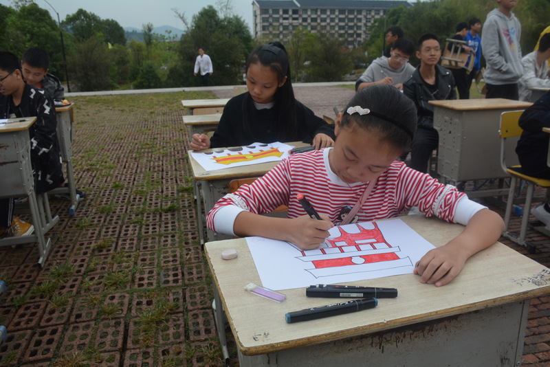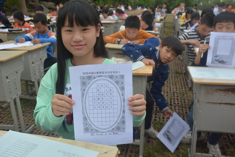 10月12日下午,正源学校好不热闹:东边中学生运动场,喊声震天,龙腾虎跃,群雄逐鹿;中间的学校广场,两千多套课桌凳布兵列阵,井井有条,两千余名中学生在这里气定神宁,笔走龙蛇,或精工细描硬笔书法,或柳筋颜骨挥毫泼墨,或五颜六色涂绘丹青。文武并举,体艺齐飞,把正源学校搞得如火如荼,热气腾腾。