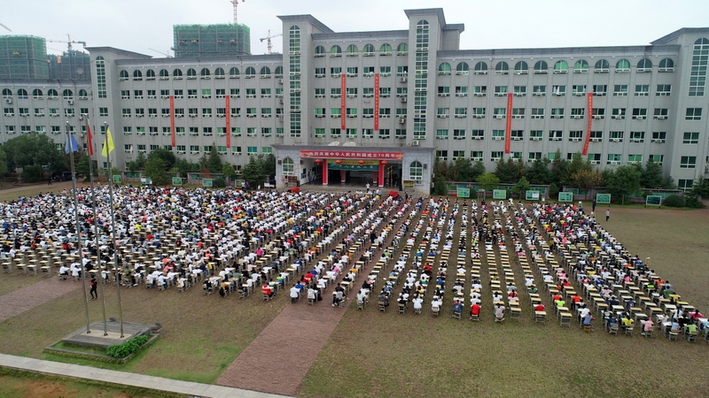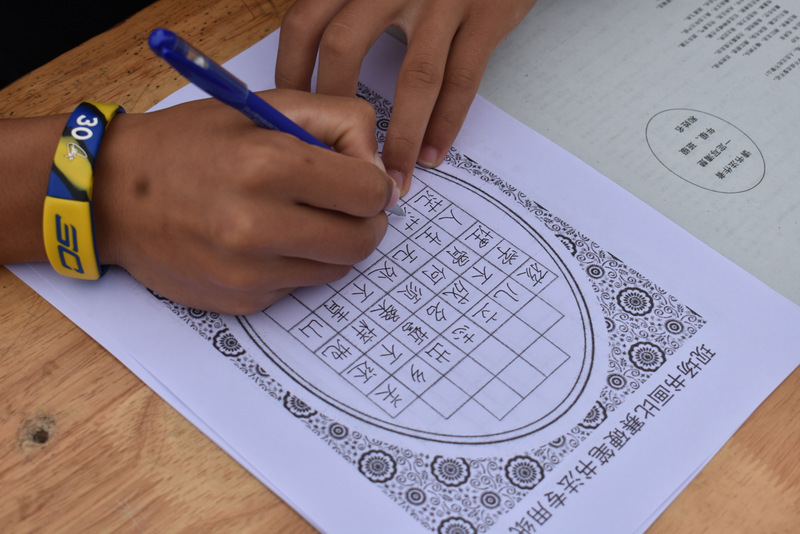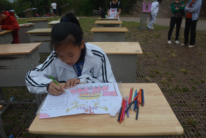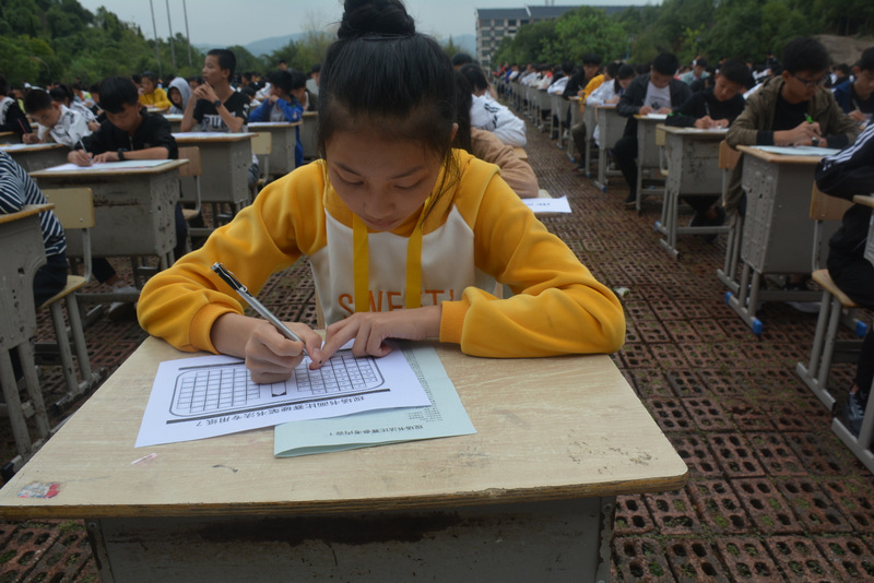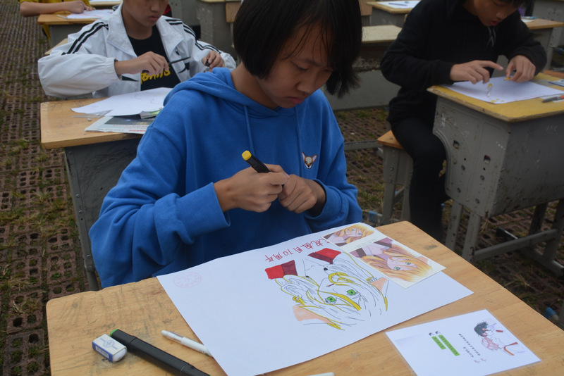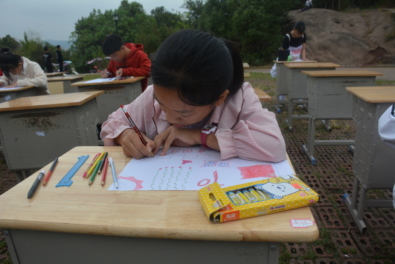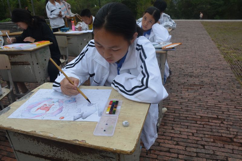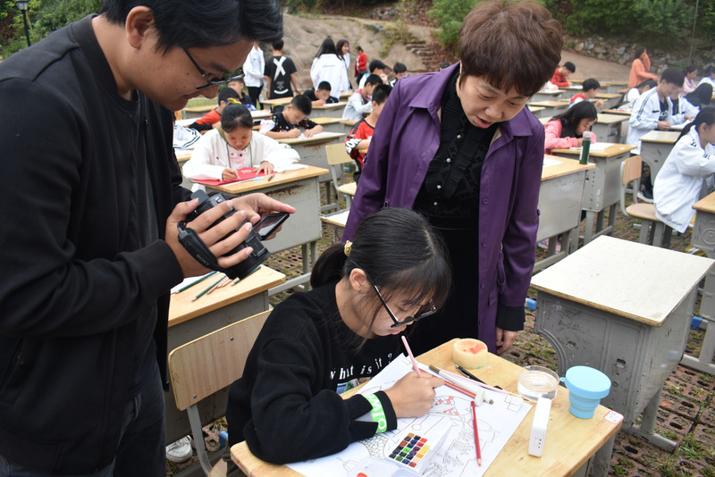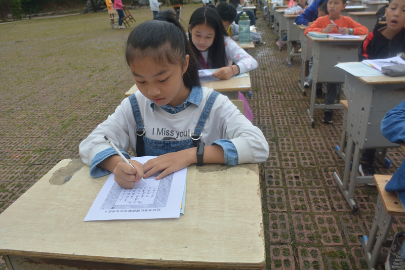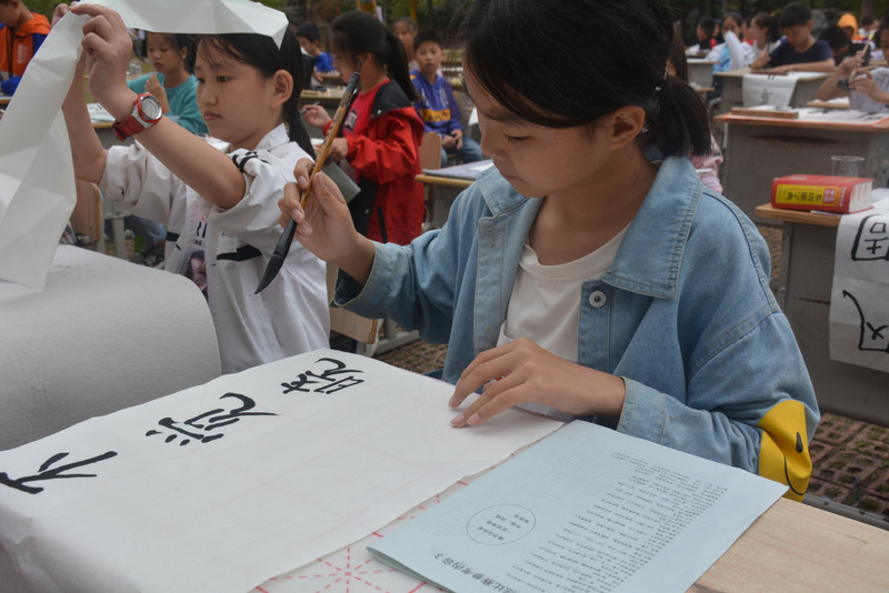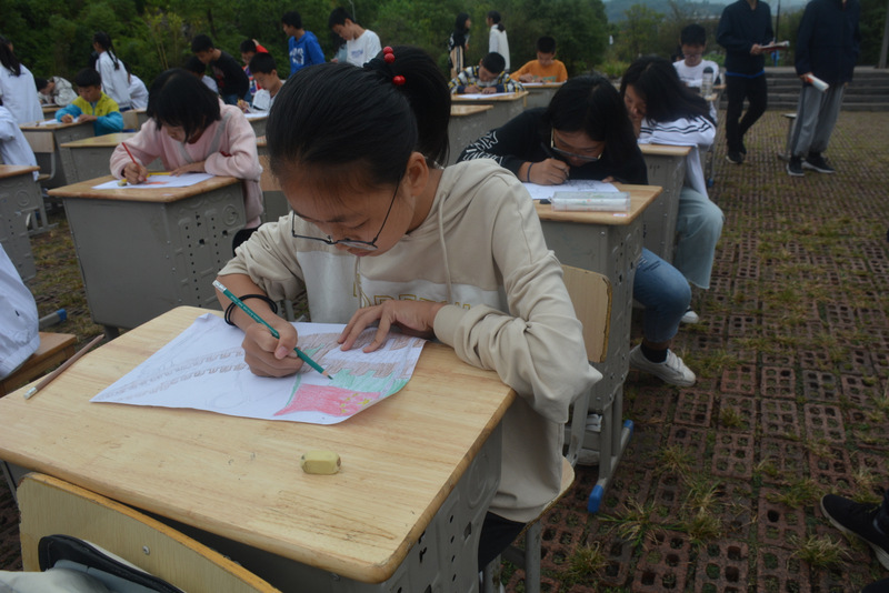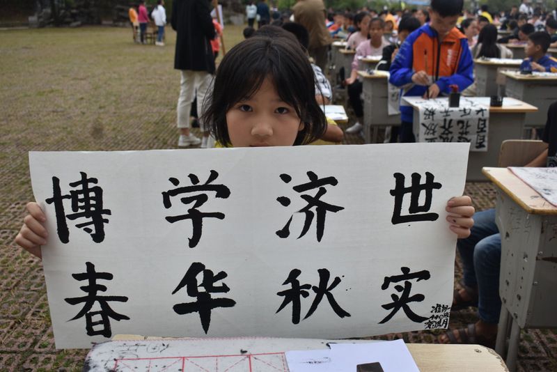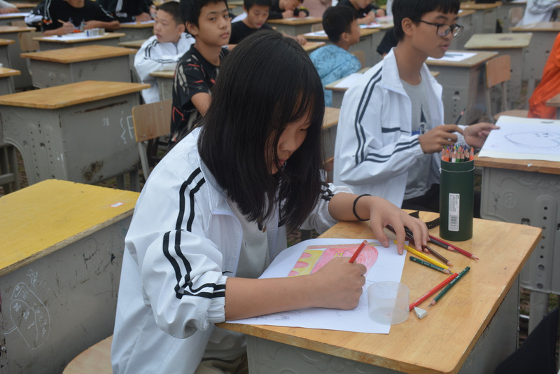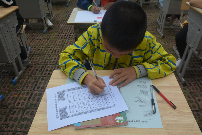 10月12日下午,正源学校好不热闹:东边中学生运动场,喊声震天,龙腾虎跃,群雄逐鹿;中间的学校广场,两千多套课桌凳布兵列阵,井井有条,两千余名中学生在这里气定神宁,笔走龙蛇,或精工细描硬笔书法,或柳筋颜骨挥毫泼墨,或五颜六色涂绘丹青。文武并举,体艺齐飞,把正源学校搞得如火如荼,热气腾腾。