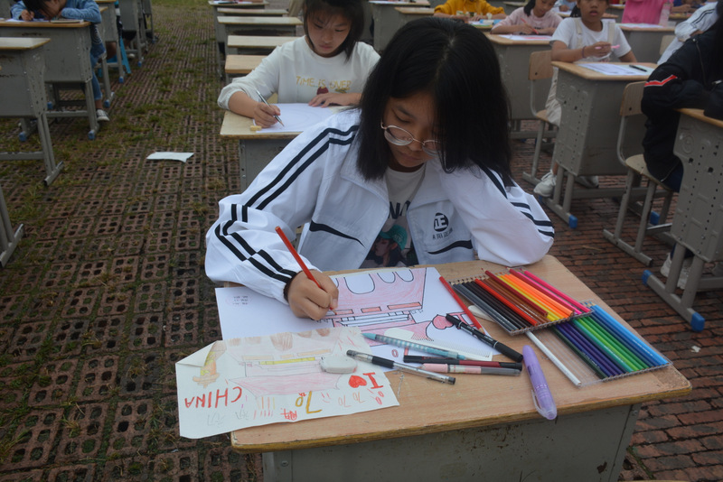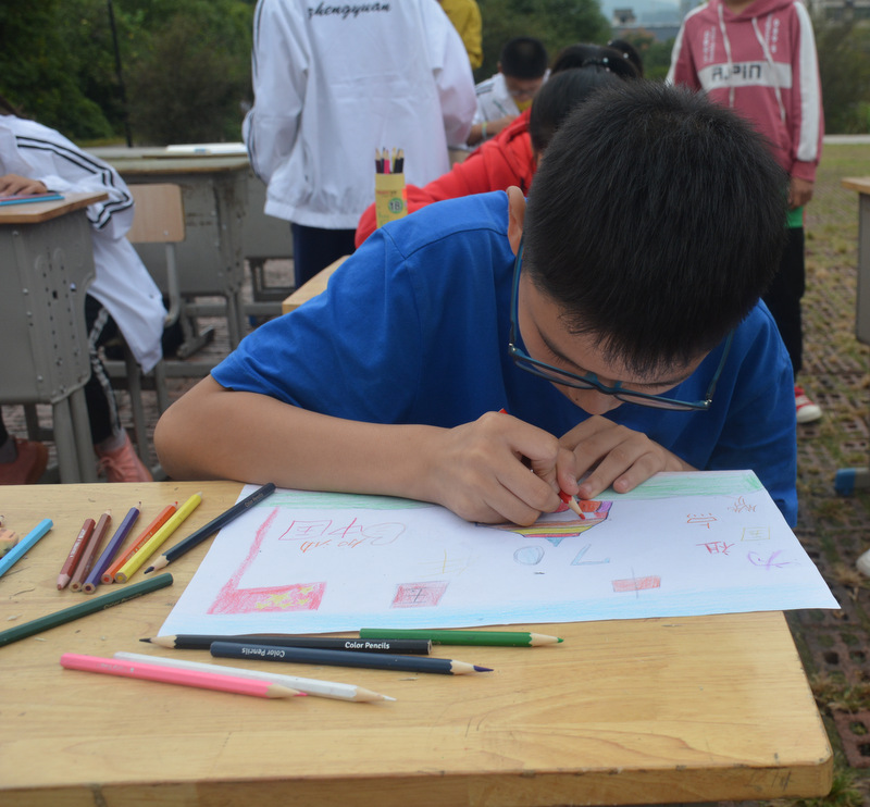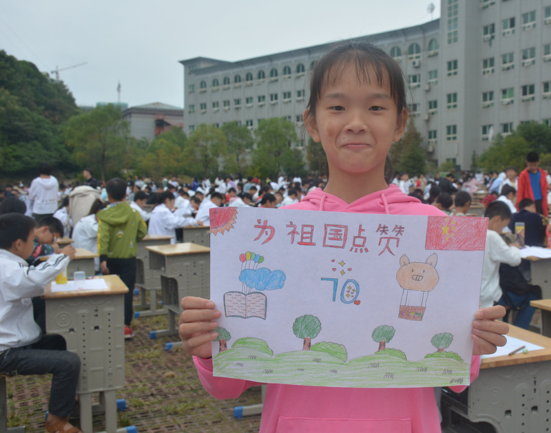 我们看到,同学们的想象极为丰富,可谓“精骛八极,心游万仞”。有画天安门的,有画长城的;有画大海航母、军舰的,有画月球“玉兔”“嫦娥”的;有画蓝天空间站的,有画大地高铁飞驰的;有画国粹脸谱开国领袖的,有画国花牡丹国宝熊猫的;有画天真素雅卡通少女的,有画活泼可爱顽皮孩童的……徜徉在同学们的艺术王国里,感受到他们的阳光、朝气、睿智、活力,任何人都会情不自禁地感叹:少年智则国智,少年强则国必强!