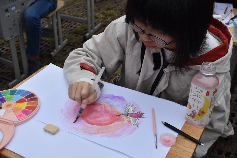 绘画竞赛组的同学们,主题一致:热情讴歌新中国成立70周年的光辉成就。而手法各异,各显神通:或为蜡笔彩绘,或为风景素写,或为彩签画、黑白装饰画、彩色创意装饰画、黑白线描创意画,不一而足。