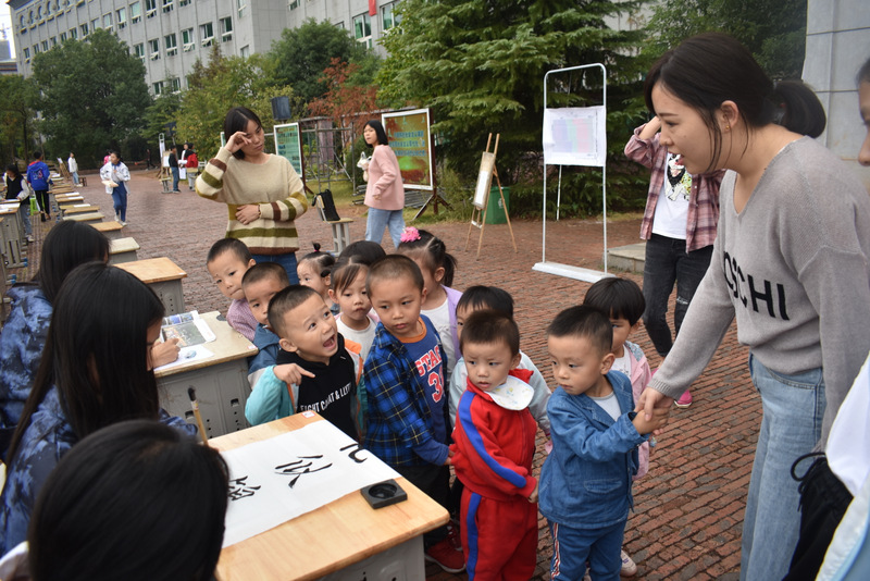 学校财务总监梁晓芬老师亲临赛场,巡视比赛,观赏学生上交的作品,并与部分学生合影。幼儿园的小朋友也来观摩了大哥哥大姐姐们的书画比赛。