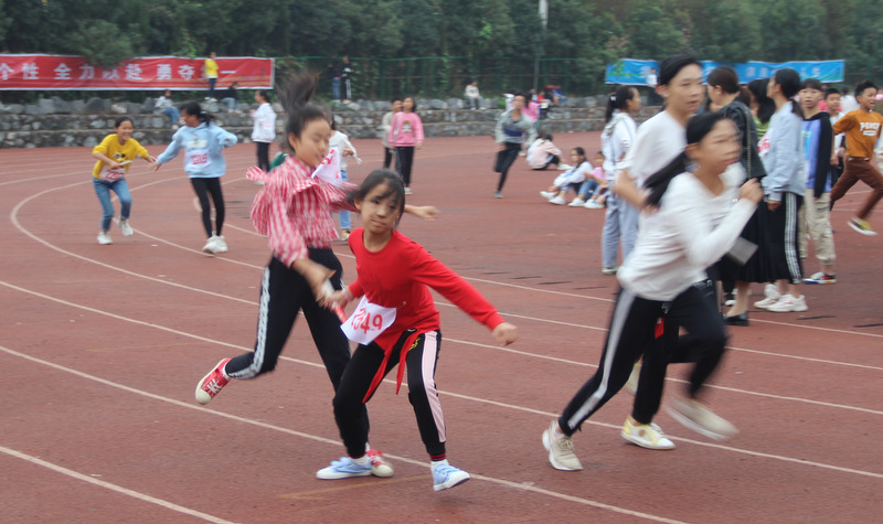 准初一女子4×100米接力跑,443班以1分07秒82的成绩夺得第一名;