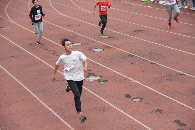 男子组800米跑,H219班刘少威以2分36秒45的成绩夺得第一名;