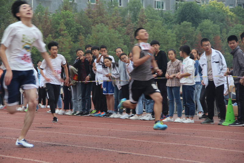 男子组200米跑,H203班刘爱斌以26秒64的成绩夺得第一名;
