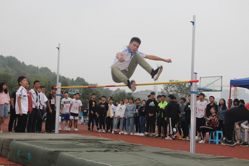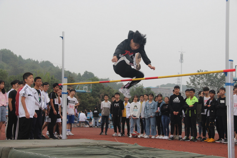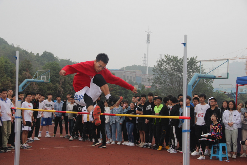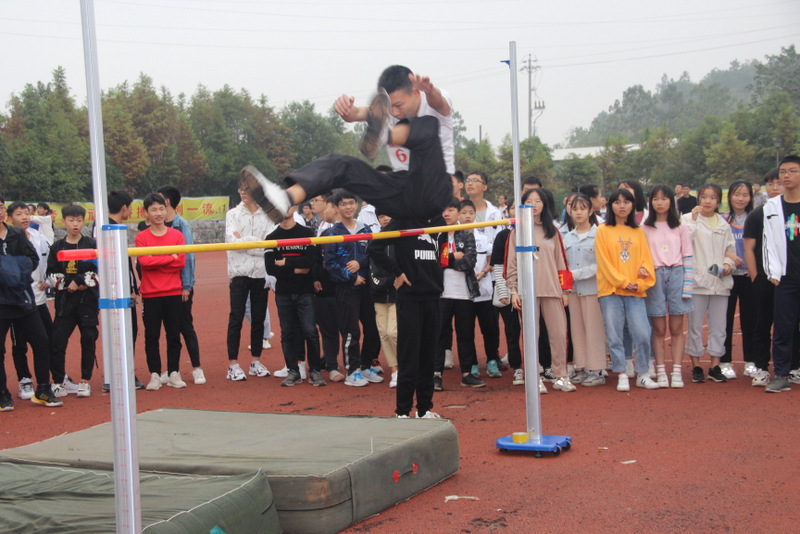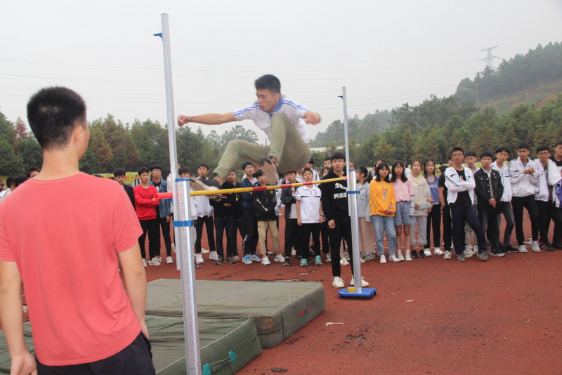 男子组跳高,H181班刘鲜以149厘米的成绩夺得第一名;