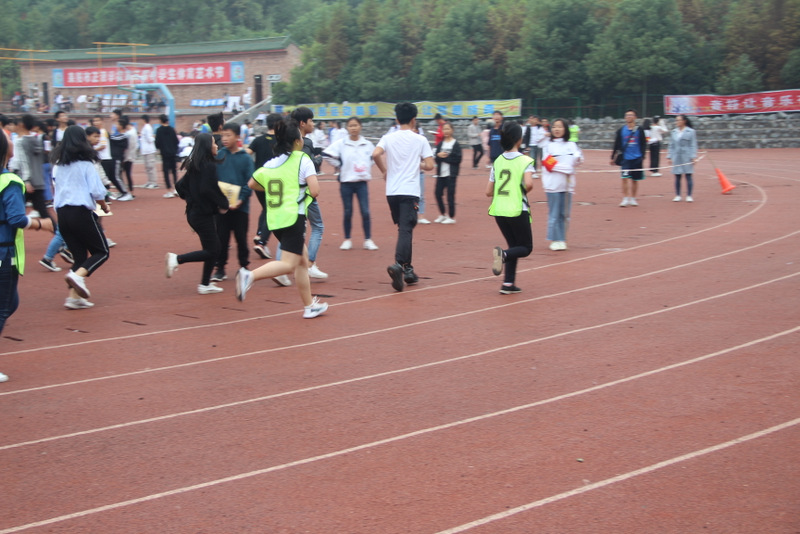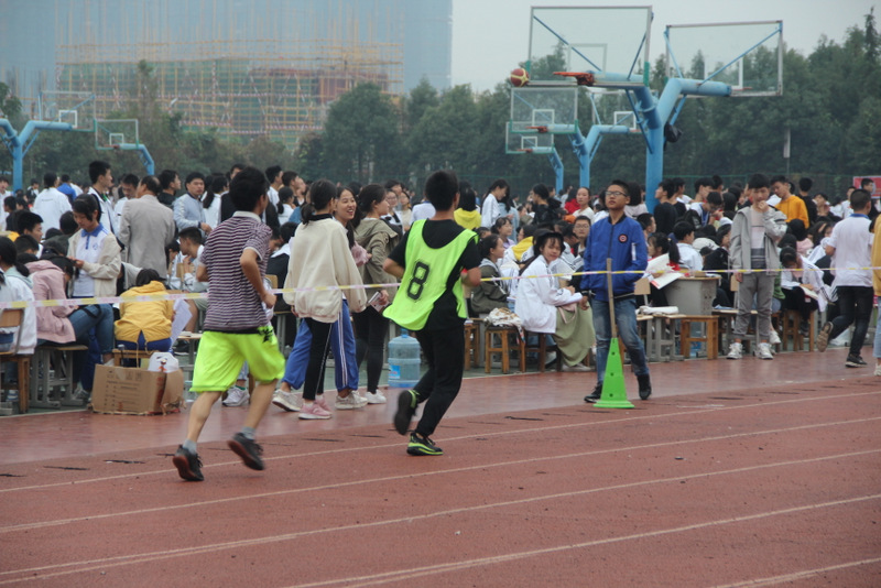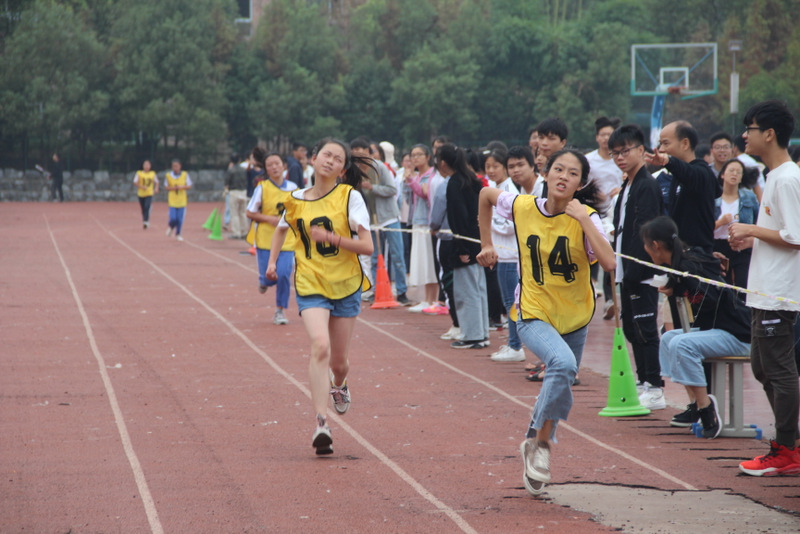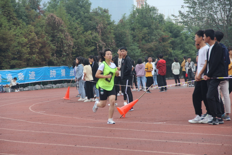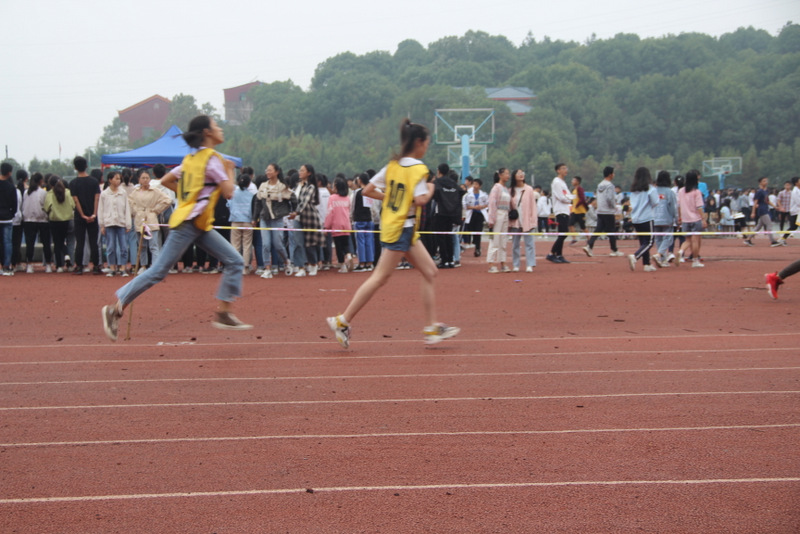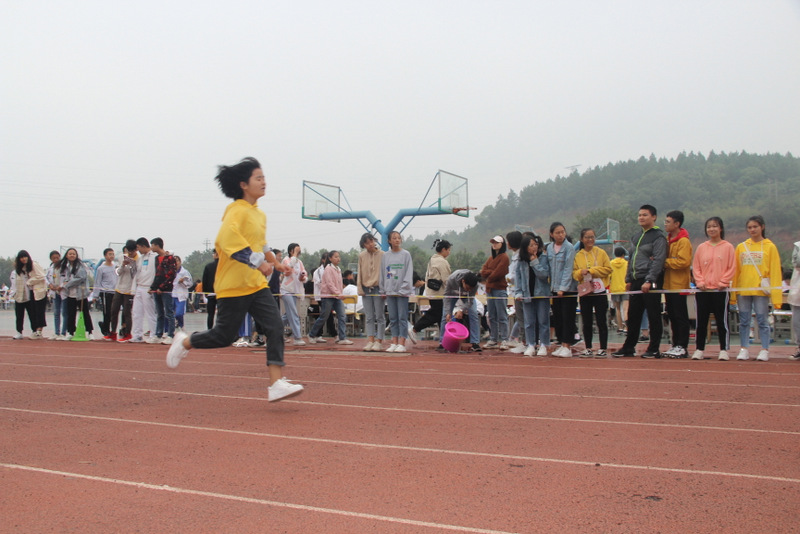女子组100米跑,H187班梁平平以34秒61的成绩夺得第一名;