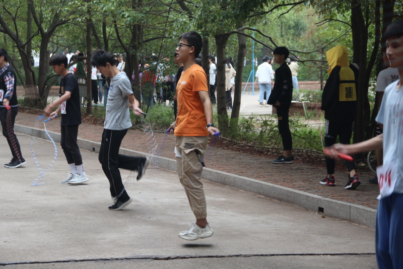 男子组跳绳,H168班聂坤以212个的成绩夺得第一名;