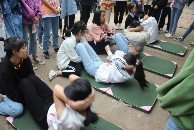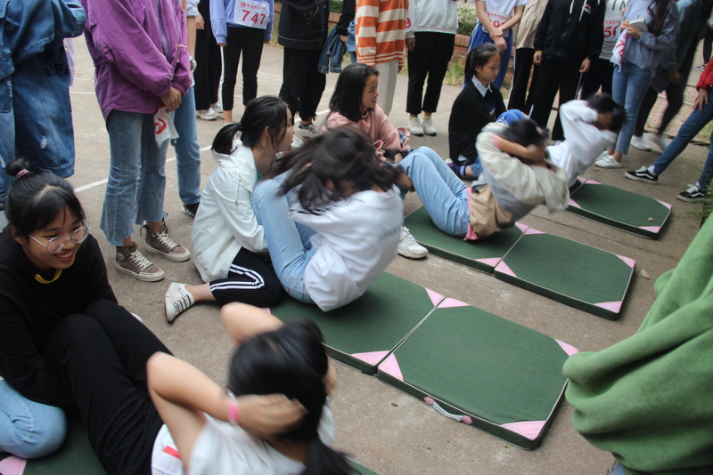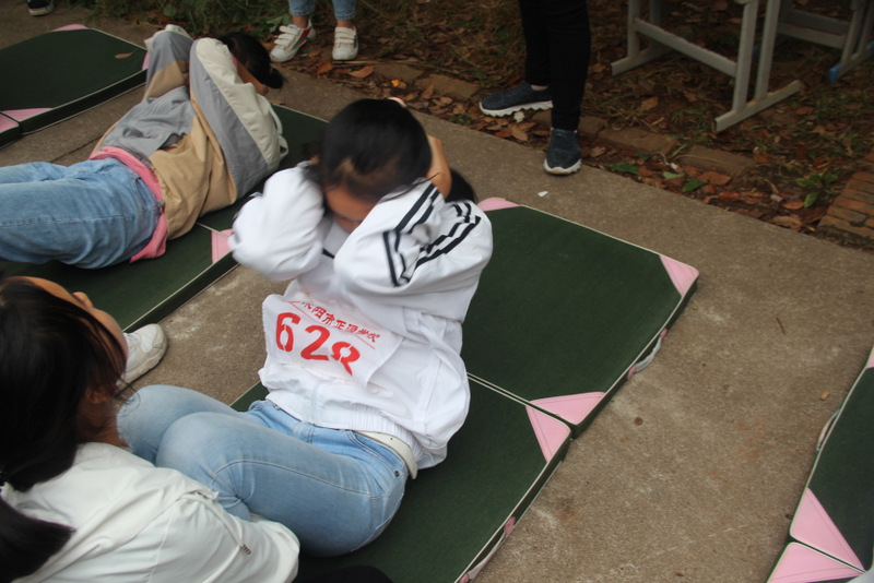 女子组仰卧起坐,H210班刘骄心以58个的成绩夺得第一名;