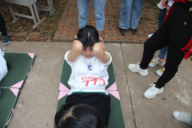 女子组仰卧起坐,H169班肖佳欢以143个的成绩夺得第一名