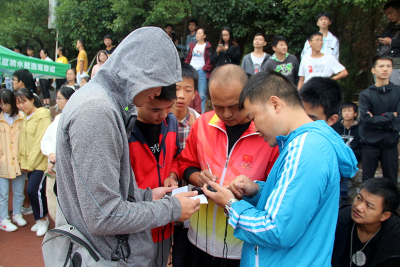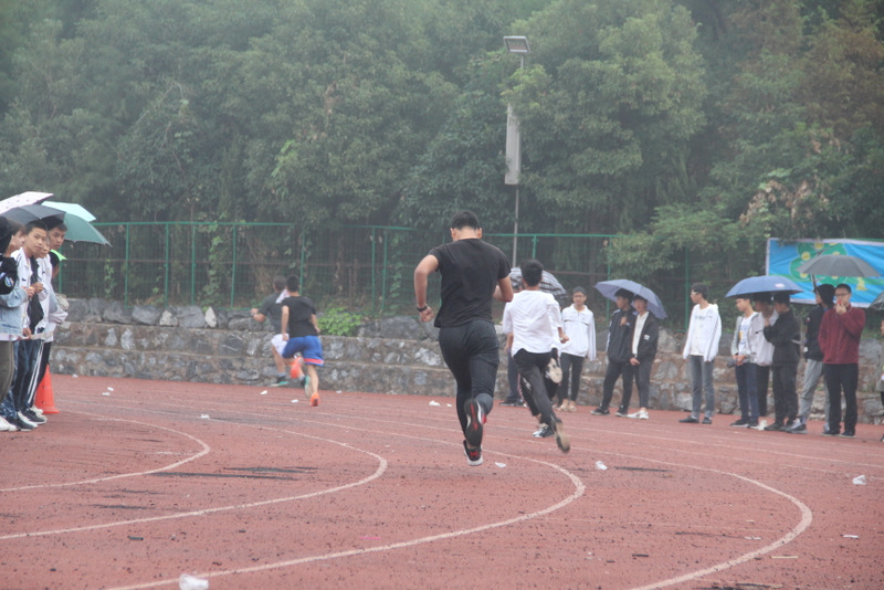 高三年级H162班谭坚同学,在男子组1500米比赛中以4分56秒02的成绩打破原李洋4分56秒24的记录。