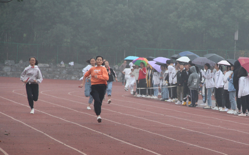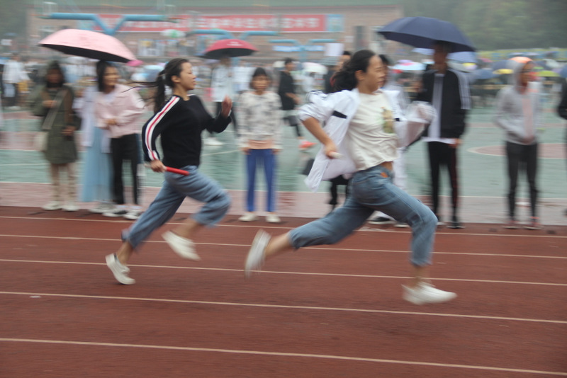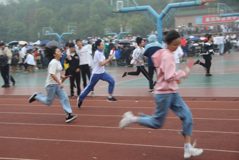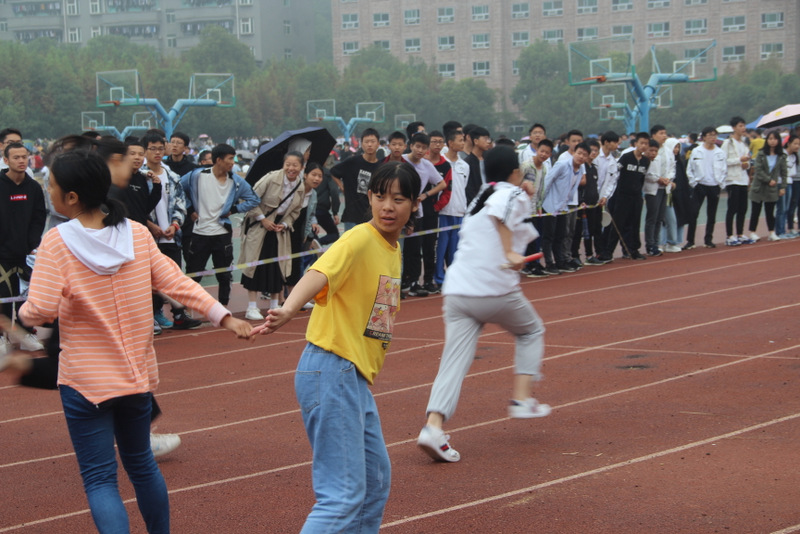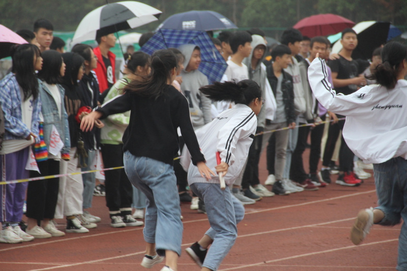 高二女子4×100米接力跑,175班以1分06秒09的成绩夺得第一名;