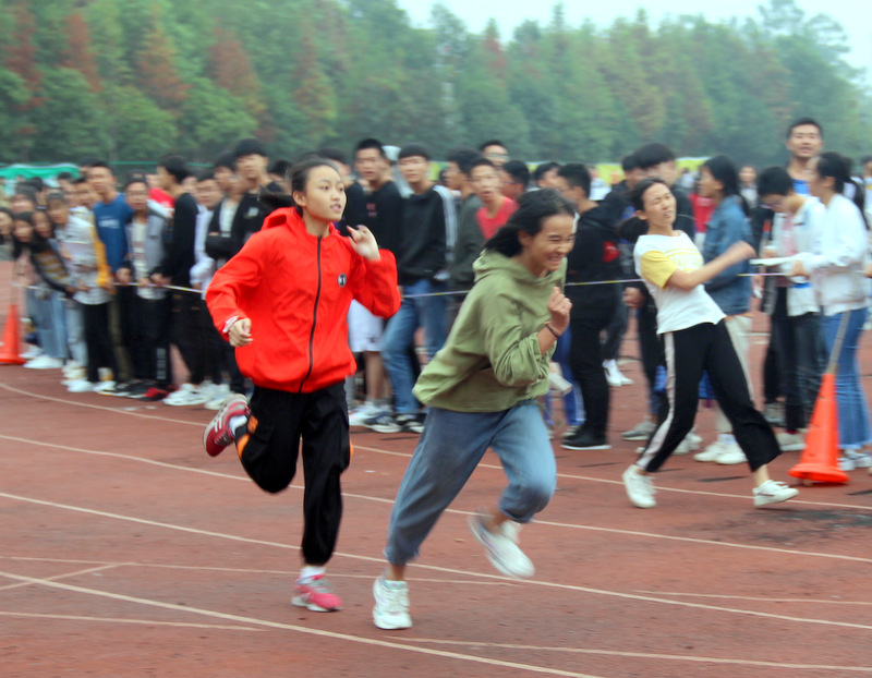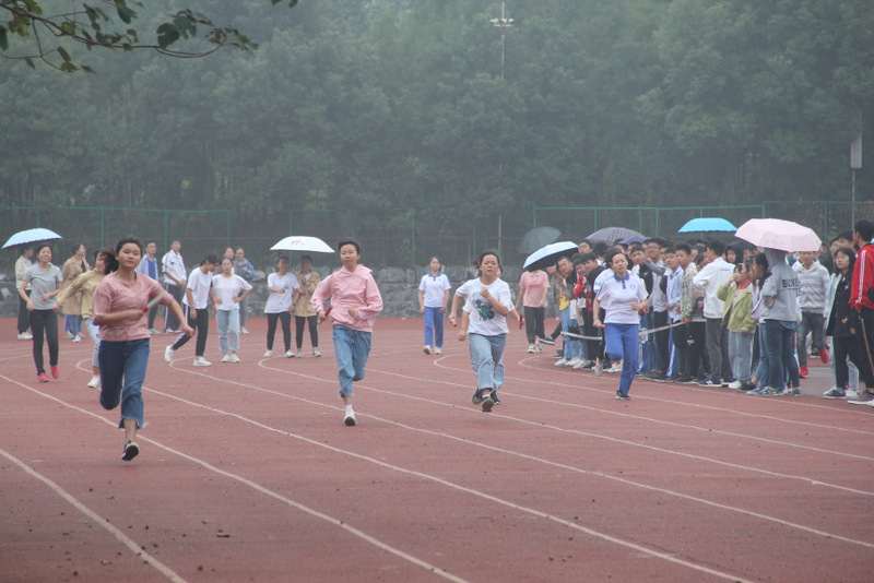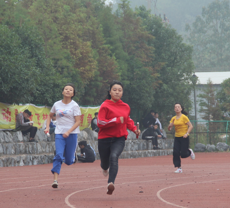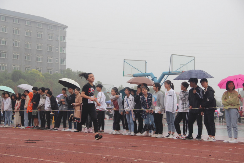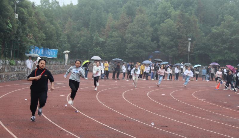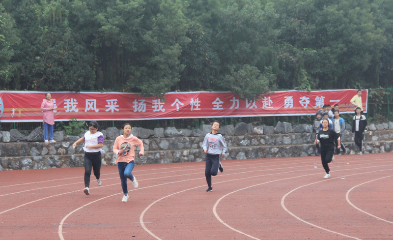 高三年级H150班肖蓉同学,在女子组100米比赛中以13秒71的成绩打破原何芳14秒43的记录。