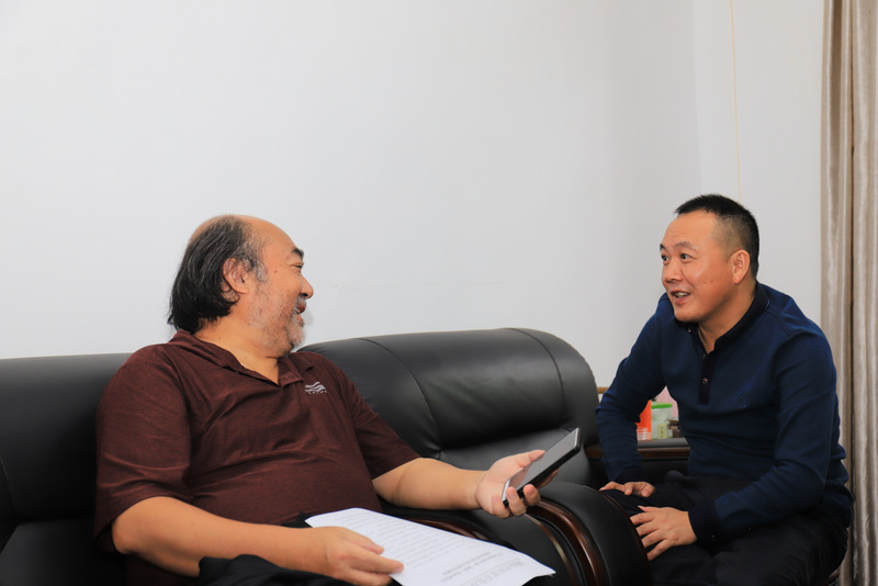 耒阳市扶贫开发办主任刘廷斌与罗校长交流