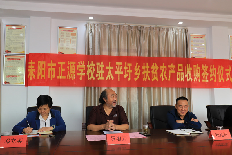 校长罗湘云现场接受荣誉锦旗,并与扶贫对口村莲花村签订《消费扶贫特产品定向收购协议书》。湖南卫视进行现场报道。罗校长在接受湖南卫视采访时说,正源学校18000师生,一天四餐,食材消耗量很大,学校一贯以来希望能吃到本地的应季菜,但因为农户种植农副产品零碎杂乱,收购起来比较麻烦,自扶贫工作队与学校取得联系以来,学校采购团队对大和圩乡的丝瓜、南瓜、香瓜、西瓜等农副产品,按长沙蔬菜瓜果价格,有多少收购多少,相互帮忙,达到双赢。