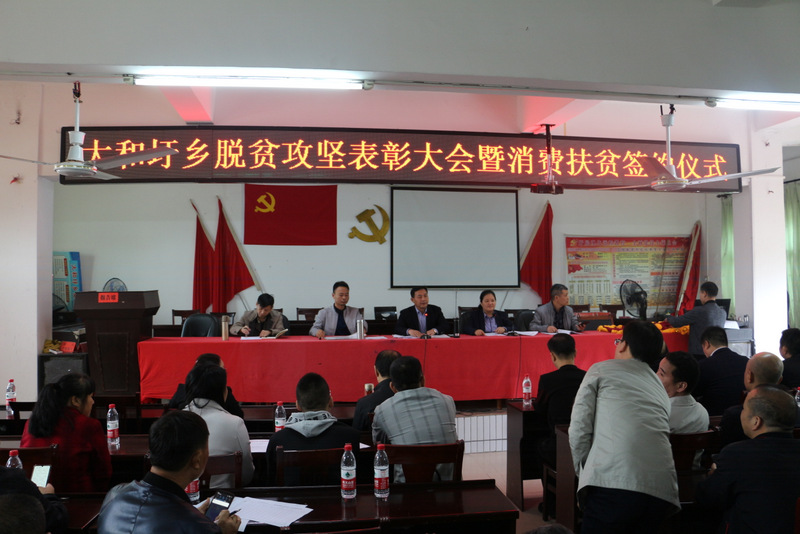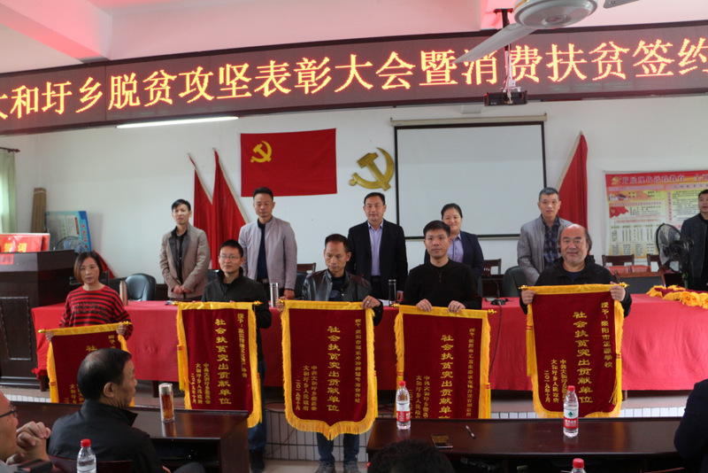 今天是第六个全国扶贫日,扶贫工作牵动着各级党委政府和企业的心。上午十点, “大和圩乡脱贫攻坚表彰大会暨消费扶贫签约仪式” 在大和圩乡政府举行,正源学校被评为2019年度全乡脱贫攻坚社会扶贫突出贡献单位,罗校长出席仪式。