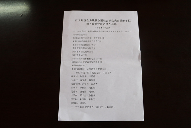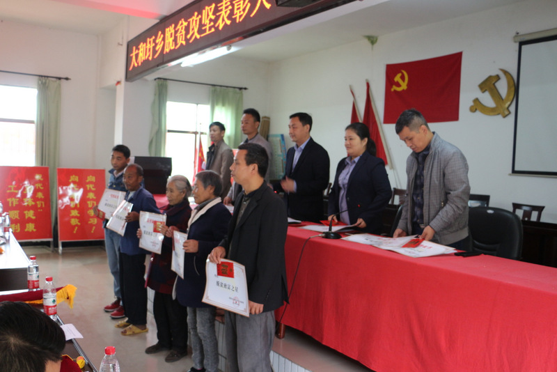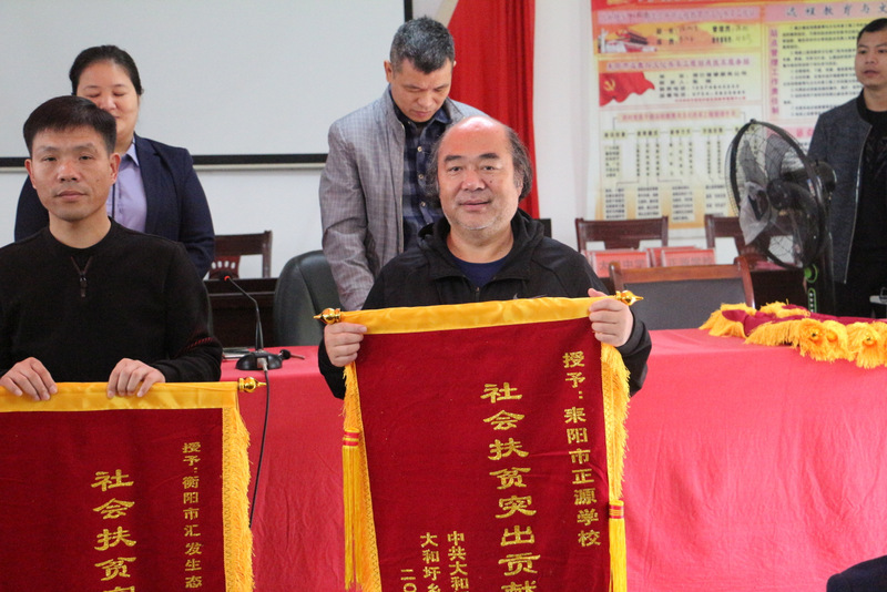 仪式由大和圩乡党委书记欧阳宏研主持,乡党委副书记刘仁古在会上宣读表彰决定:正源学校等11个单位获2019年度全乡脱贫攻坚社会扶贫突出贡献单位殊荣;15名贫困户获脱贫致富之星并现场领奖。乡党委副书记、乡长刘春梅发表现场讲话,她说,关于消费扶贫,正源学校已在大和圩乡带了很好的头,把他们的爱心融在了消费扶贫中充分体现,使一部分贫困户收入迅速提高,大和圩乡党委、政府及全乡4万人民对此表示衷心感谢。