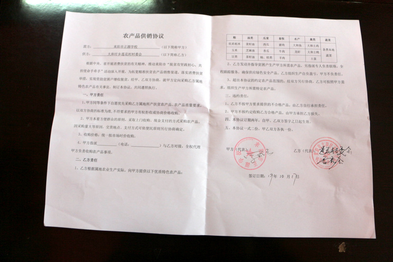 两年多来,正源学校后勤采购团队把莲花村当成了自己的供应基地,但供求问题随之也凸显出来:学校需求量大,需求品种多,莲花村现有种植数量及品种只能解决极少一部分需要。为此,通过政府组织签约仪式,以乡镇党委、政府为背书,更能做好供需关系的互动。根据供需实际情况,将过去的“你有什么我买什么”供求理念扭转为“我要什么你种什么”是当务之急,新的供求关系将以学校需要为主导,向村民提供采购计划,村民按学校需求发挥种植和养殖的最大潜力,扩大种植规模,增加种植产量。