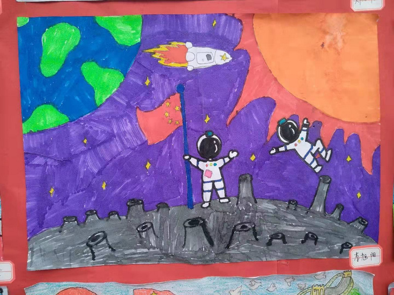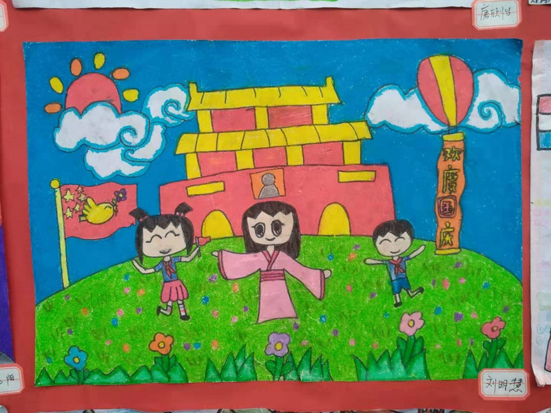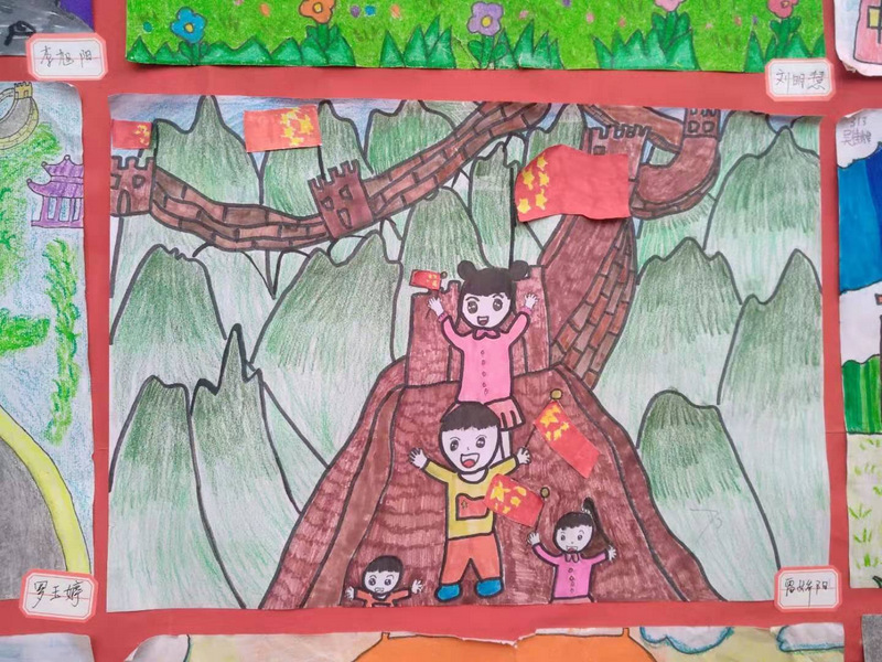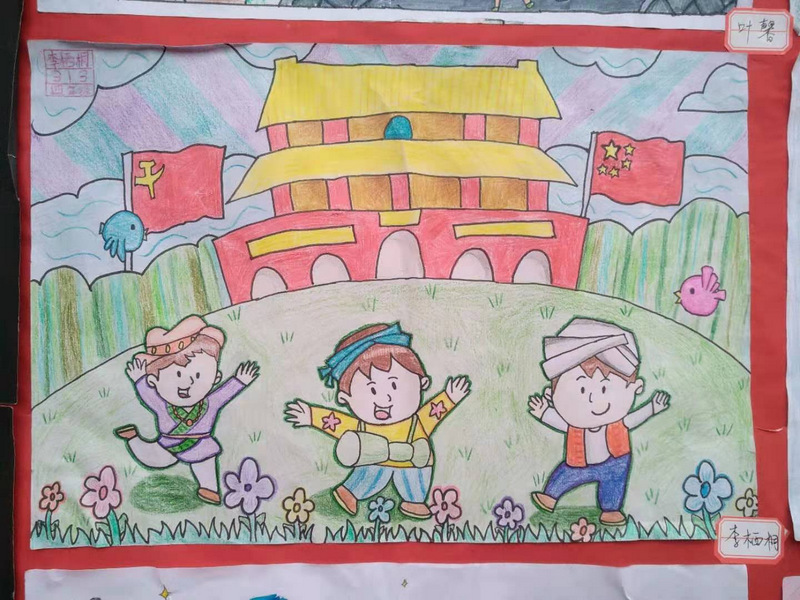 此次参加评展的对象是四五六年级全体学生,通过前期宣传、动员,学生们积极参与其中,秉着公平公正的原则,小学部美术老师们评选出本年级的优秀作品并布置了展览。优秀作品116余幅,其中手抄报作品30幅。画展的作品内容多样:祝福祖国生日快乐,歌颂民族团结,描绘我的中国梦,画心中的长城、天安门,还有向祖国升国旗敬礼等,学生们通过个性化的创作,大胆的色调搭配表达了心中的美丽世界和丰富的想象力。