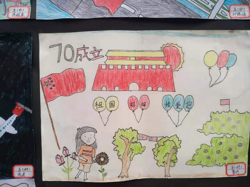 小学部举办庆祝建国70周年绘画及手抄报作品评选展