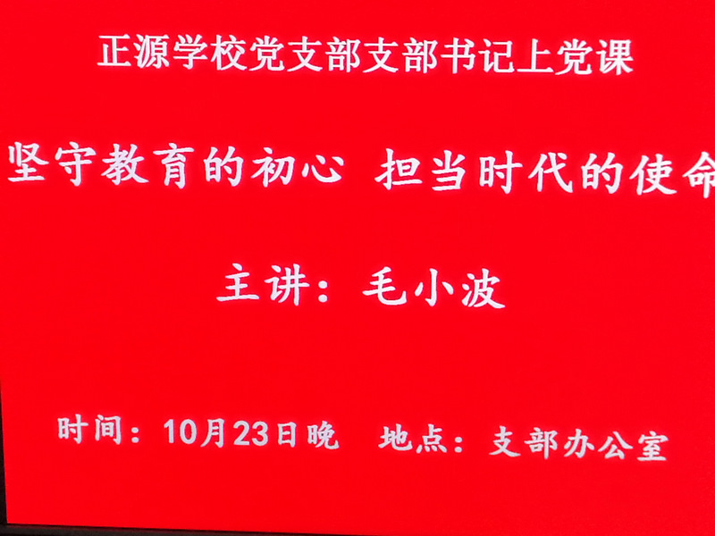 为响应党中央在全党开展“不忘初心、牢记使命”主题教育的号召,不断提高全体党员的党性意识和爱国情怀。10月23日晚,正源学校党支部开展 “不忘初心,牢记使命”主题党日活动。全体党员教师参加本次活动,学校党支部组织委员周文根主持会议。