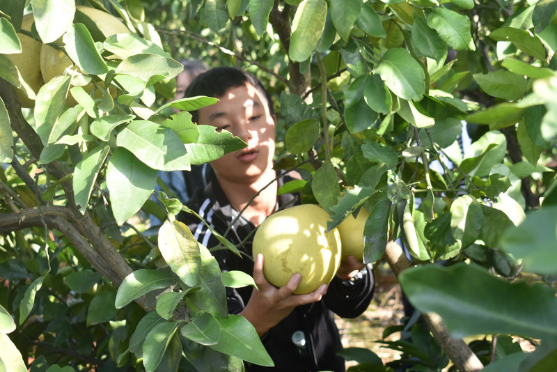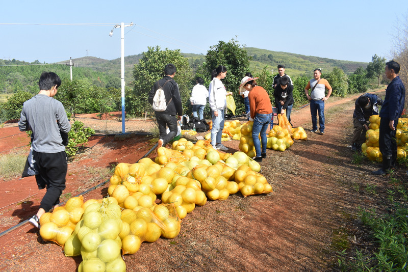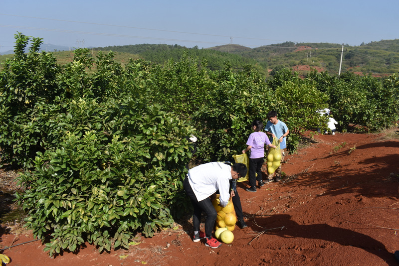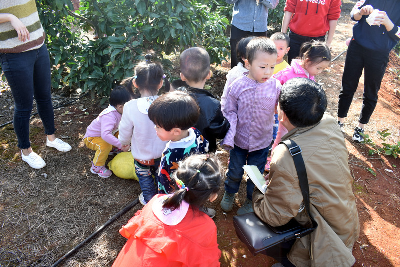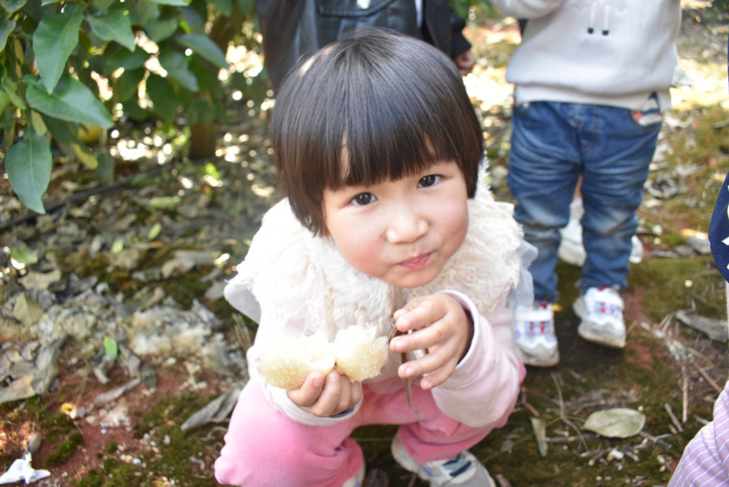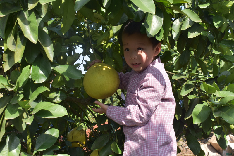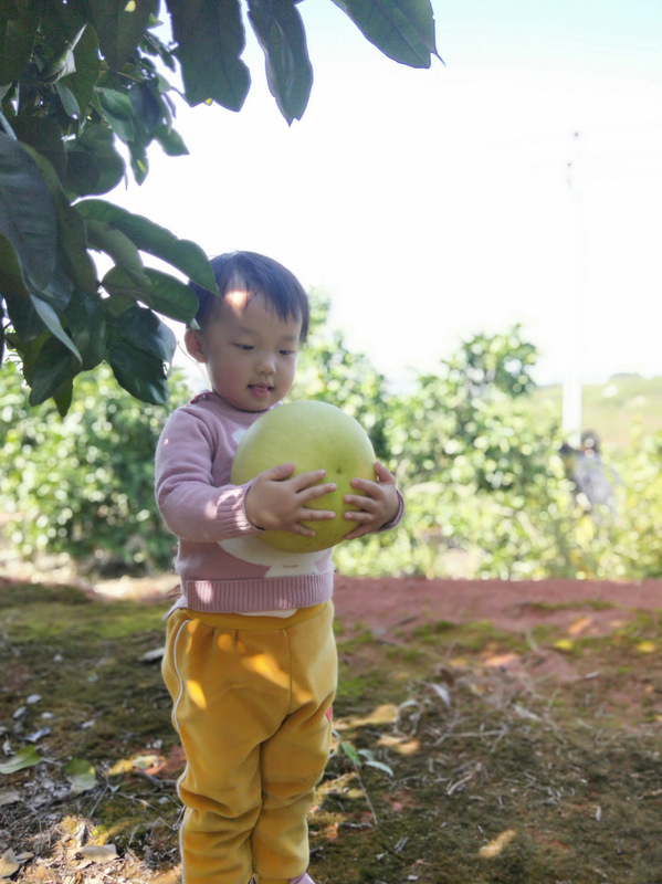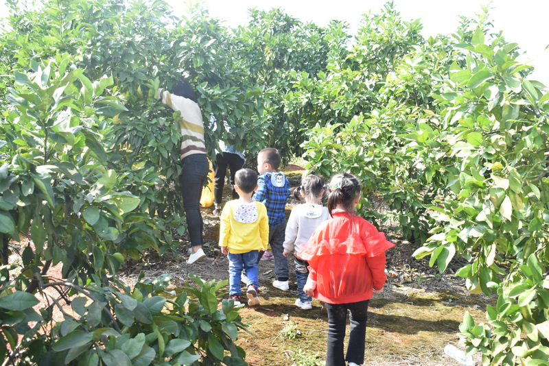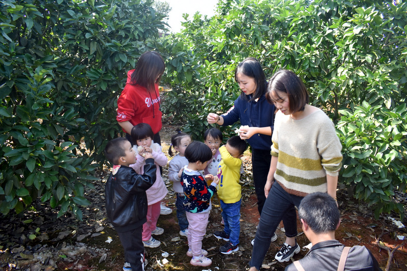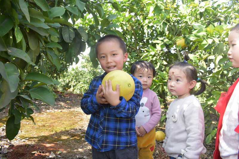 幼儿园的小朋友们个个欢呼雀跃,乐不可支。记者问了他们几个问题,七嘴八舌,答案也八九不离十:大哥哥大姐姐们今天摘的是什么?——柚子。柚子长在什么地方?——树上。不是长在街上的水果店里?——不是。柚子是什么味道?——“甜”“酸”“苦”……不论是什么答案,孩子们都有了一条龙的切身体验。
